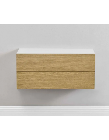 2 x Væghængte sengeborde i møbelplade H12 x B50 cm - Hvid/Natur