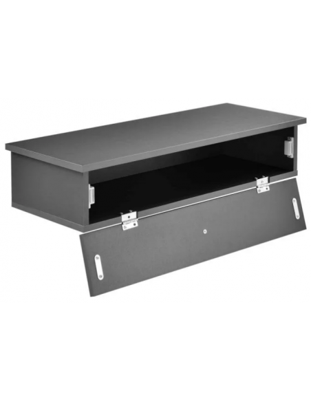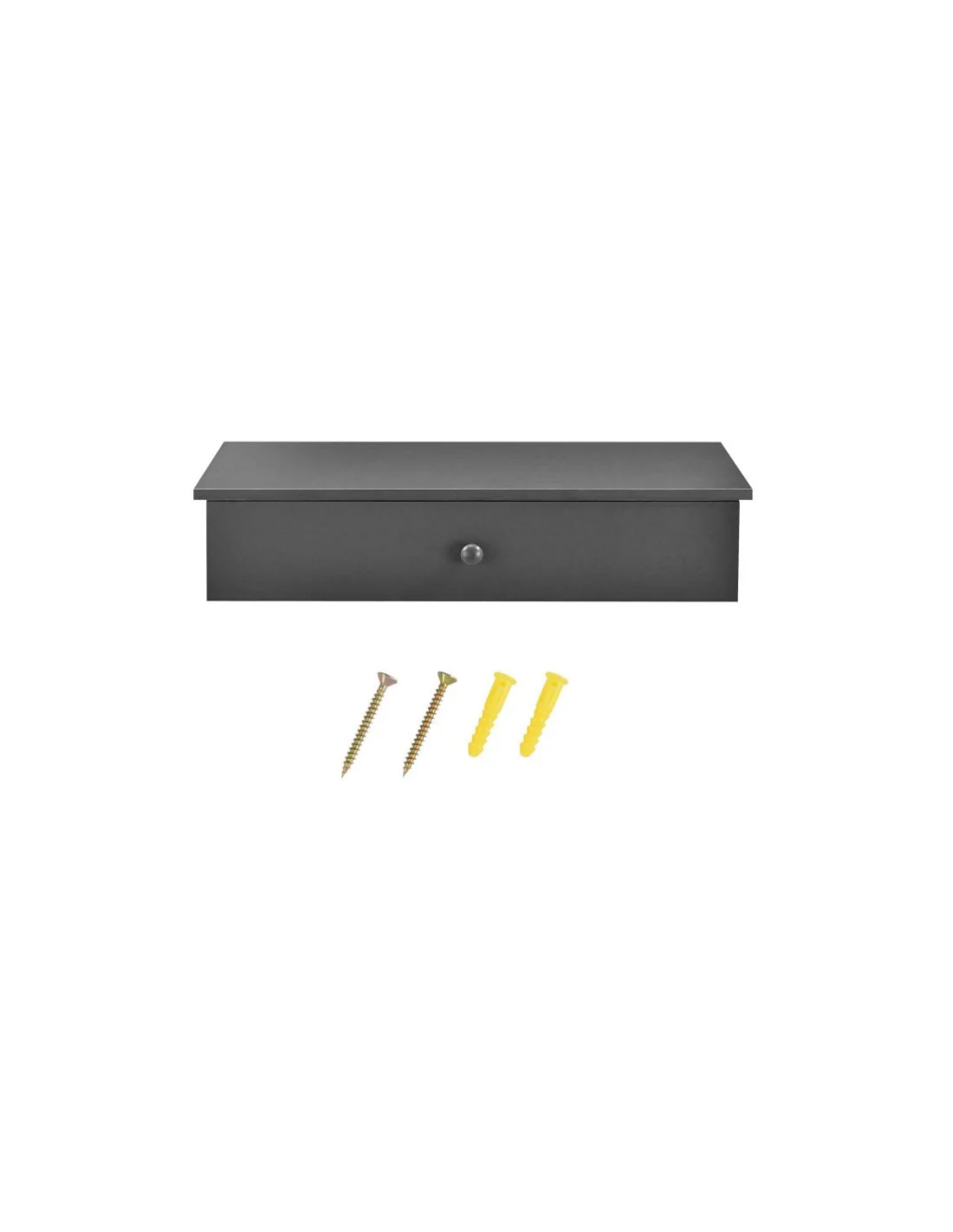 Sæt med 2 væghængte sengeborde, udført i et design af mørkegrå møbelplade. Sengebordene måler 12,6 cm i højden og 60 x 24 cm i bredde og dybde.