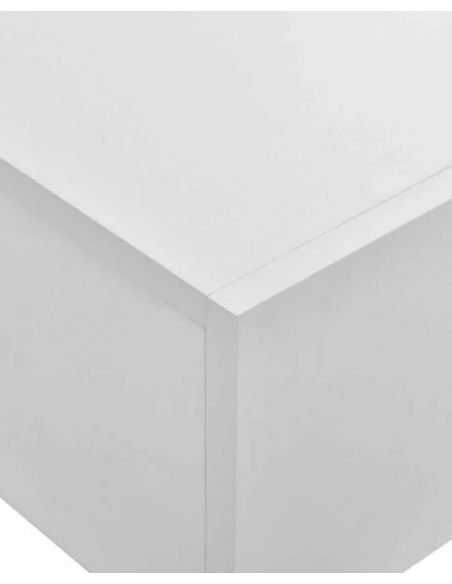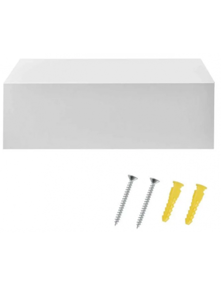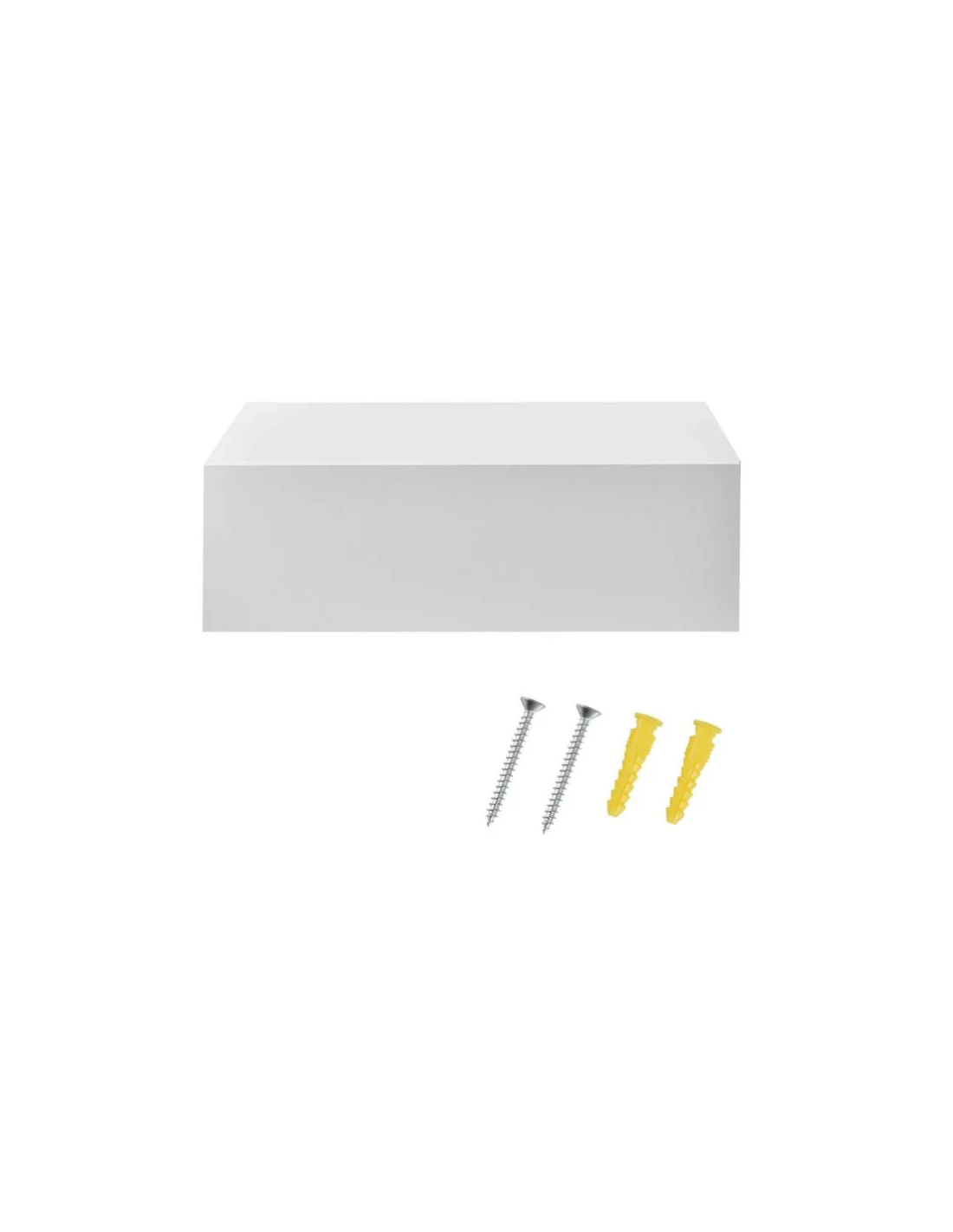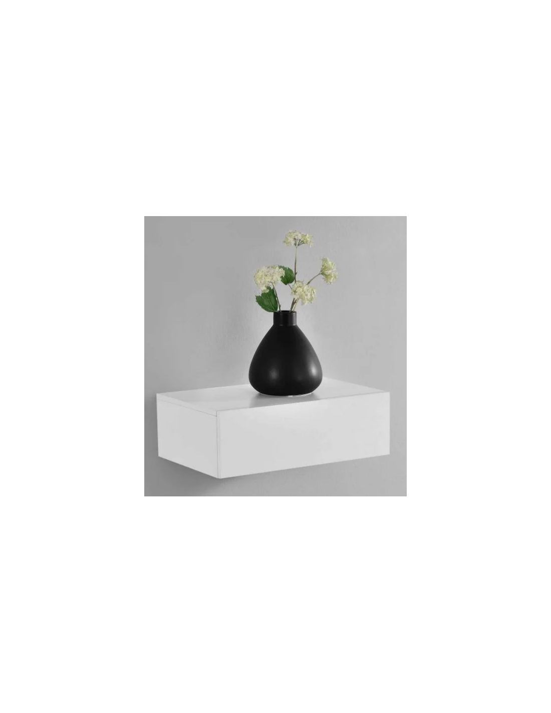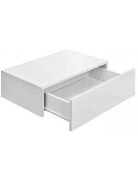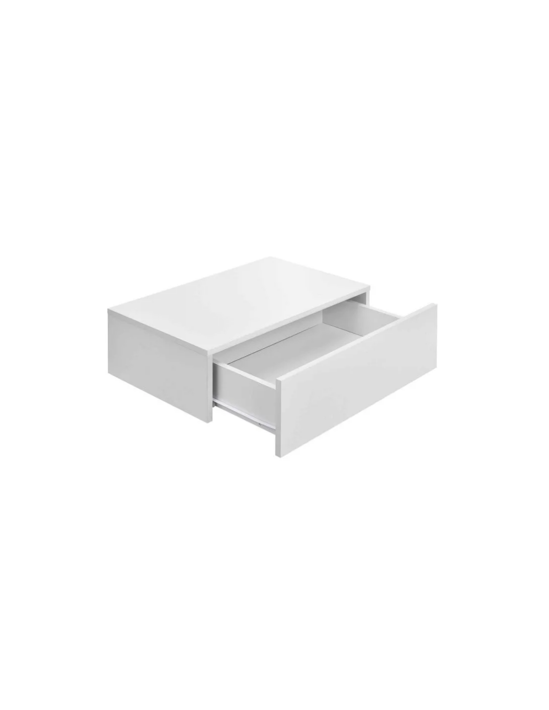Væghængt sengebord udført i et design af hvid møbelplade. Sengebordet måler 15 cm i højden og 46 x 30 cm i bredde og dybde.