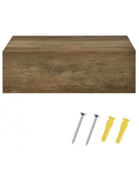 Væghængt sengebord udført i et design af mørk natur møbelplade. Sengebordet måler 15 cm i højden og 46 x 30 cm i bredde og dybde.