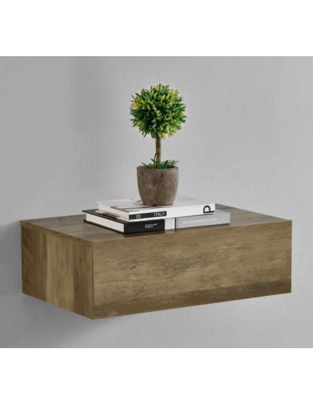 Væghængt sengebord i møbelplade H15 x B46 cm - Mørk natur