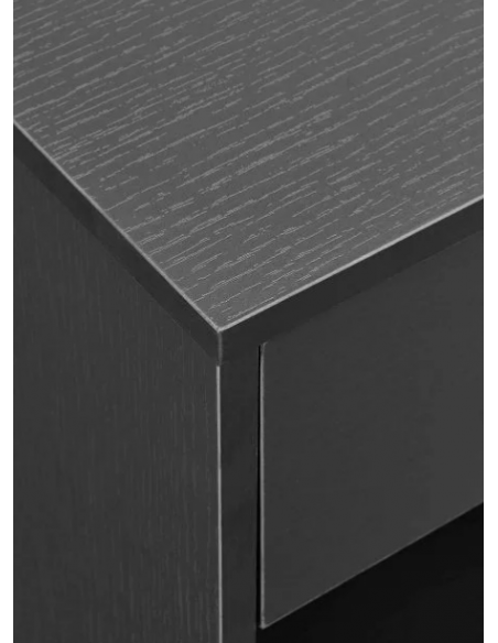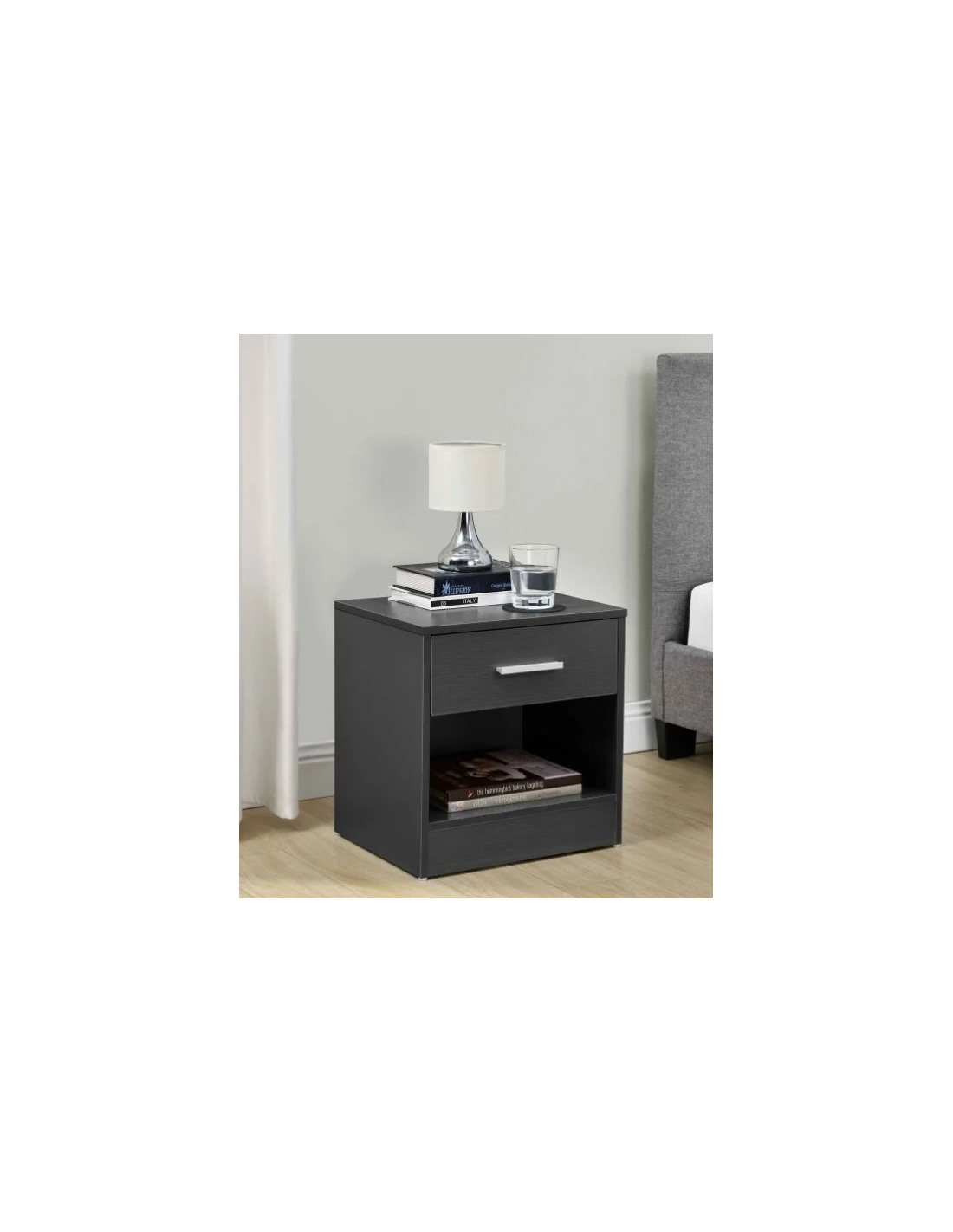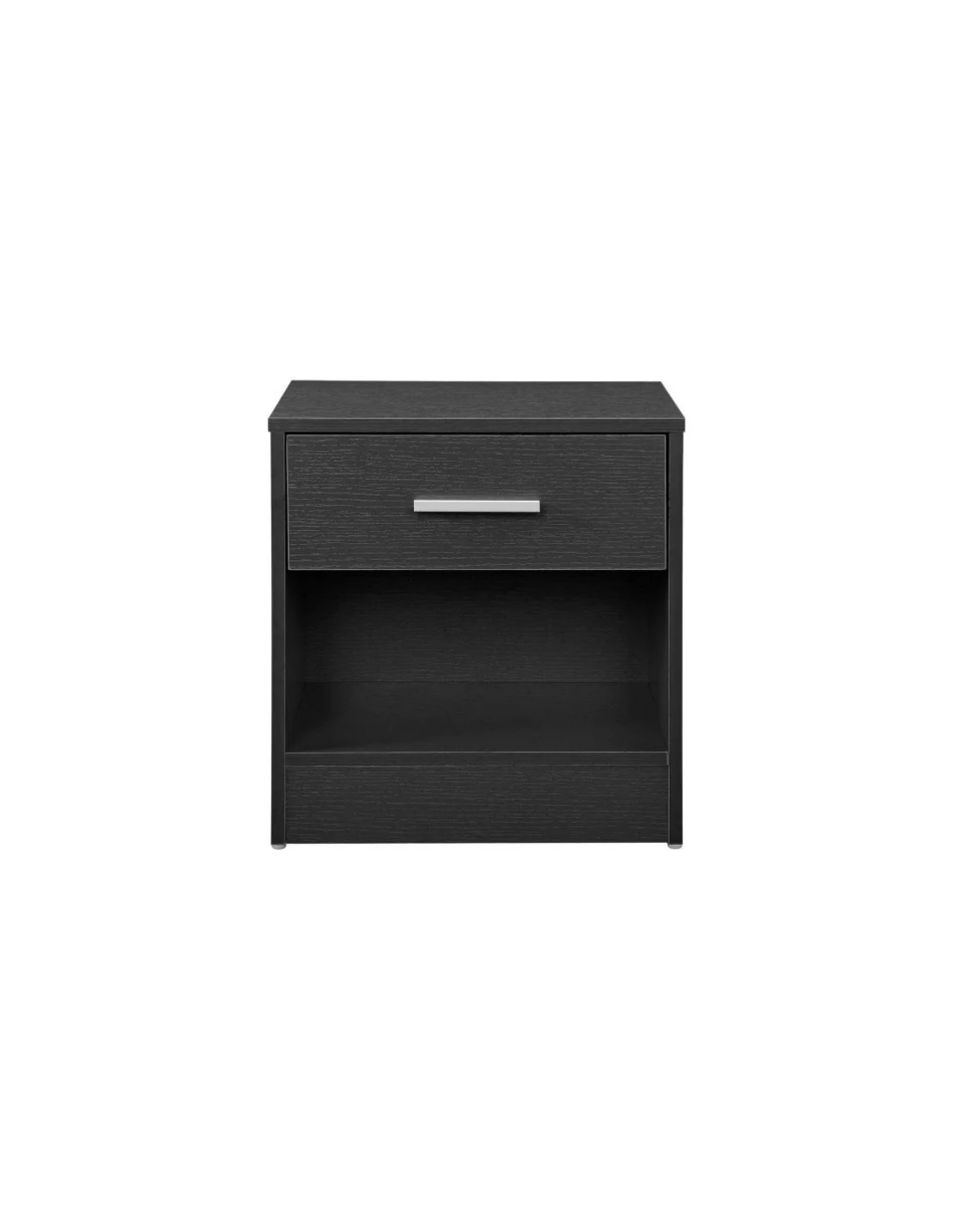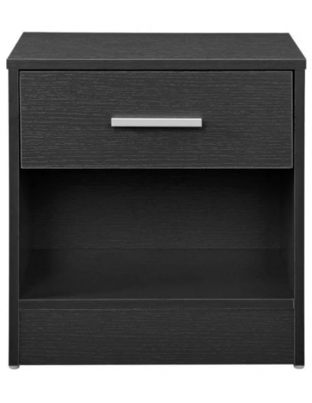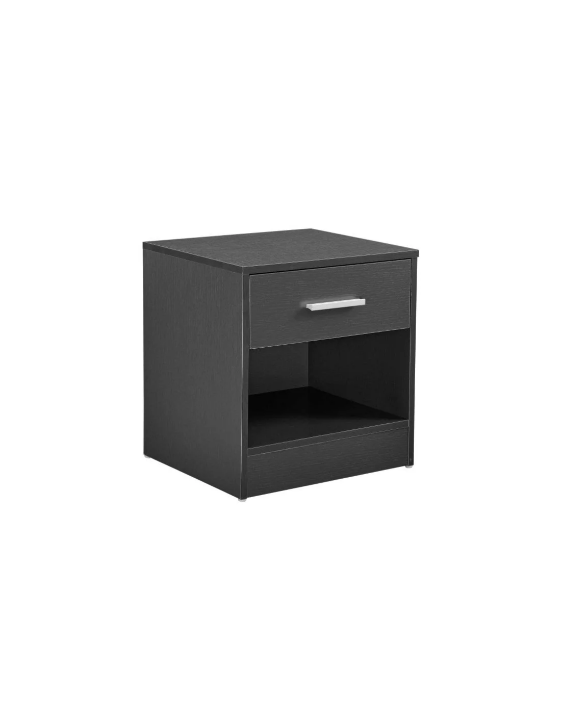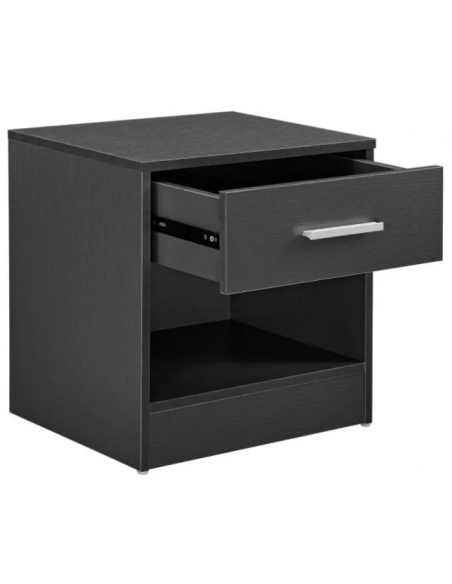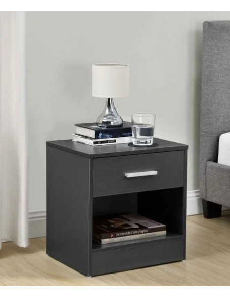 Sengebord udført i et design af møbelplade. Sengebordet måler 38 cm i højden og 36,5 x 29,5 cm i bredde og dybde.