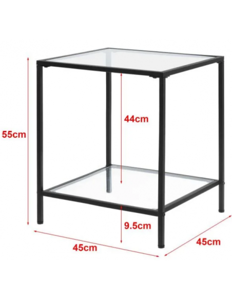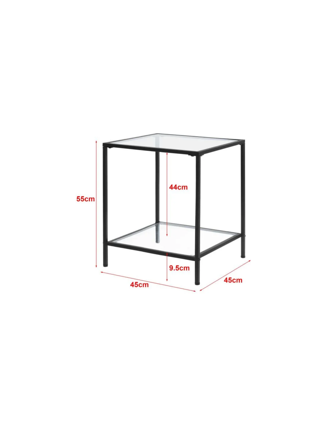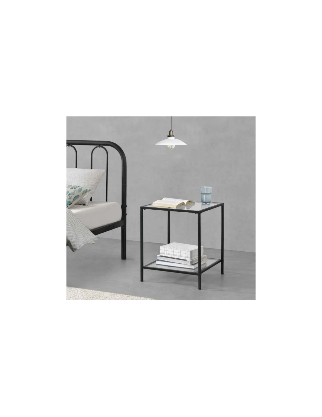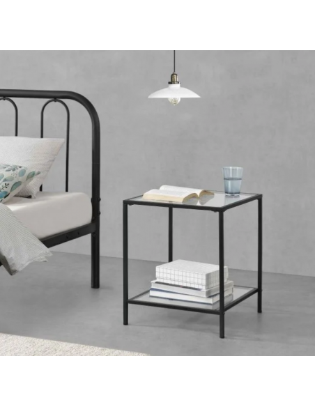 Sengebord i metal og glas H55 x B45 x D45 cm - Sort