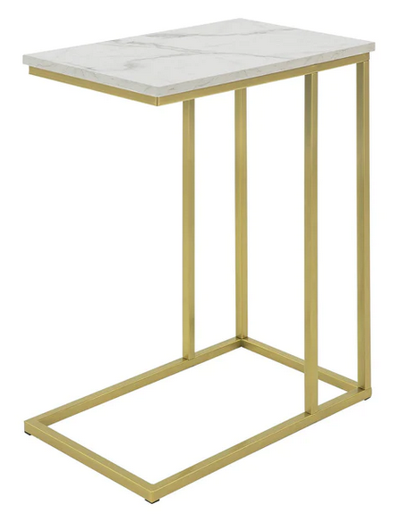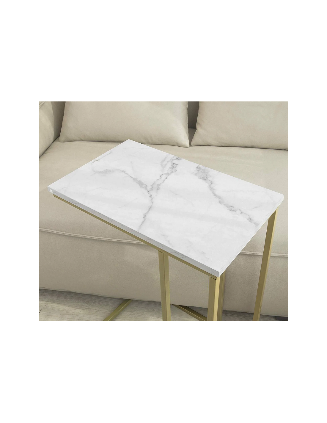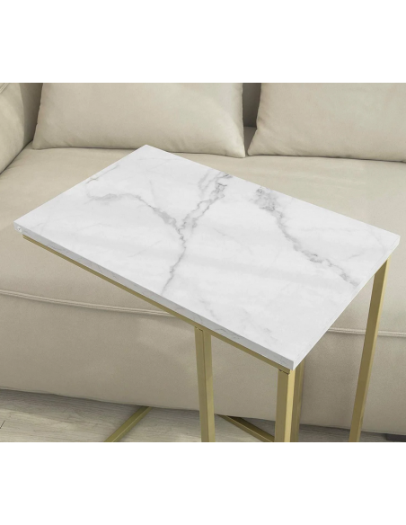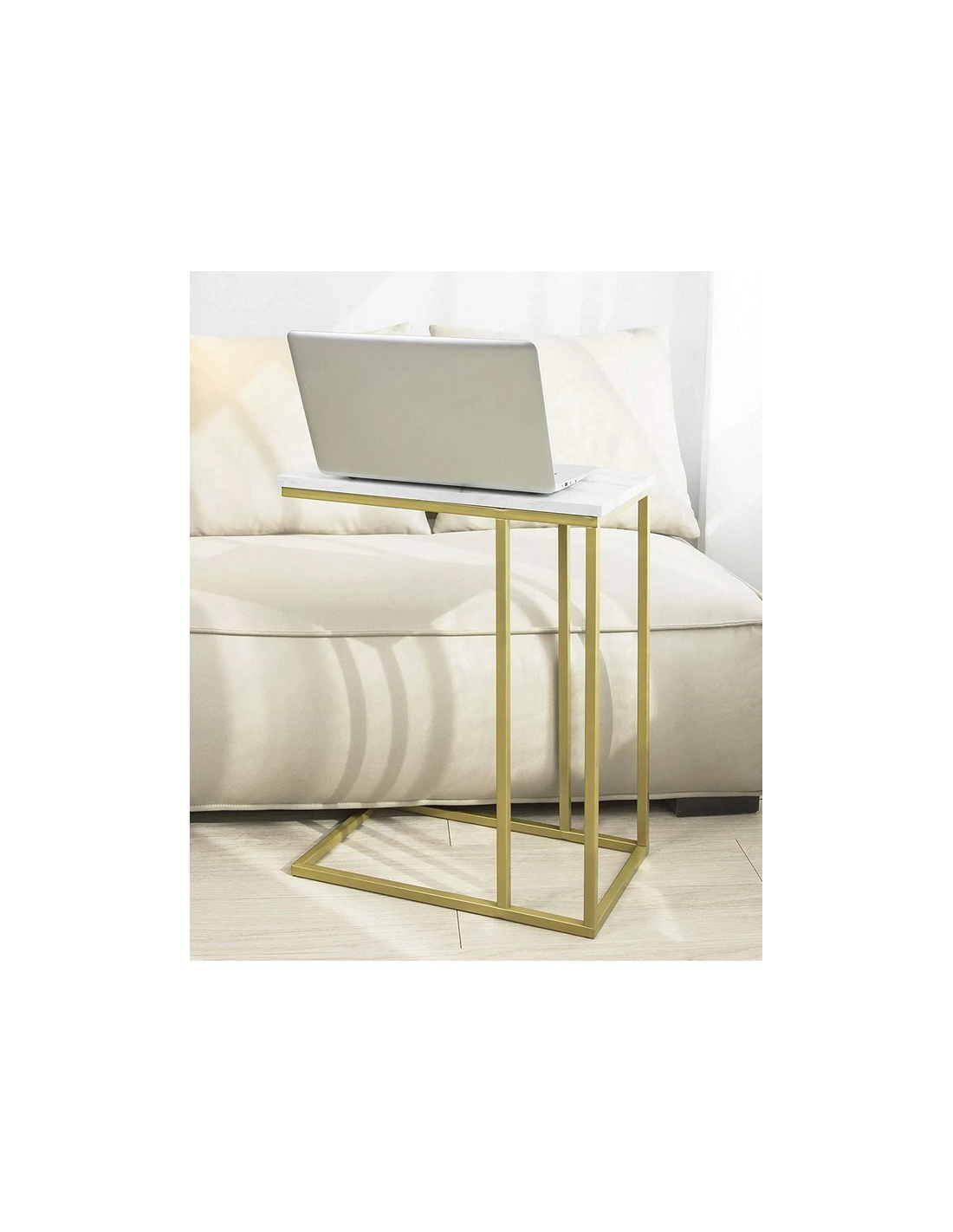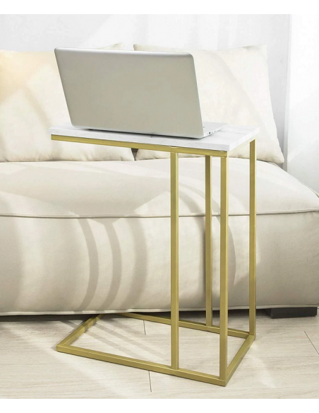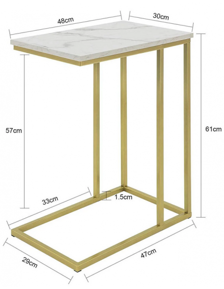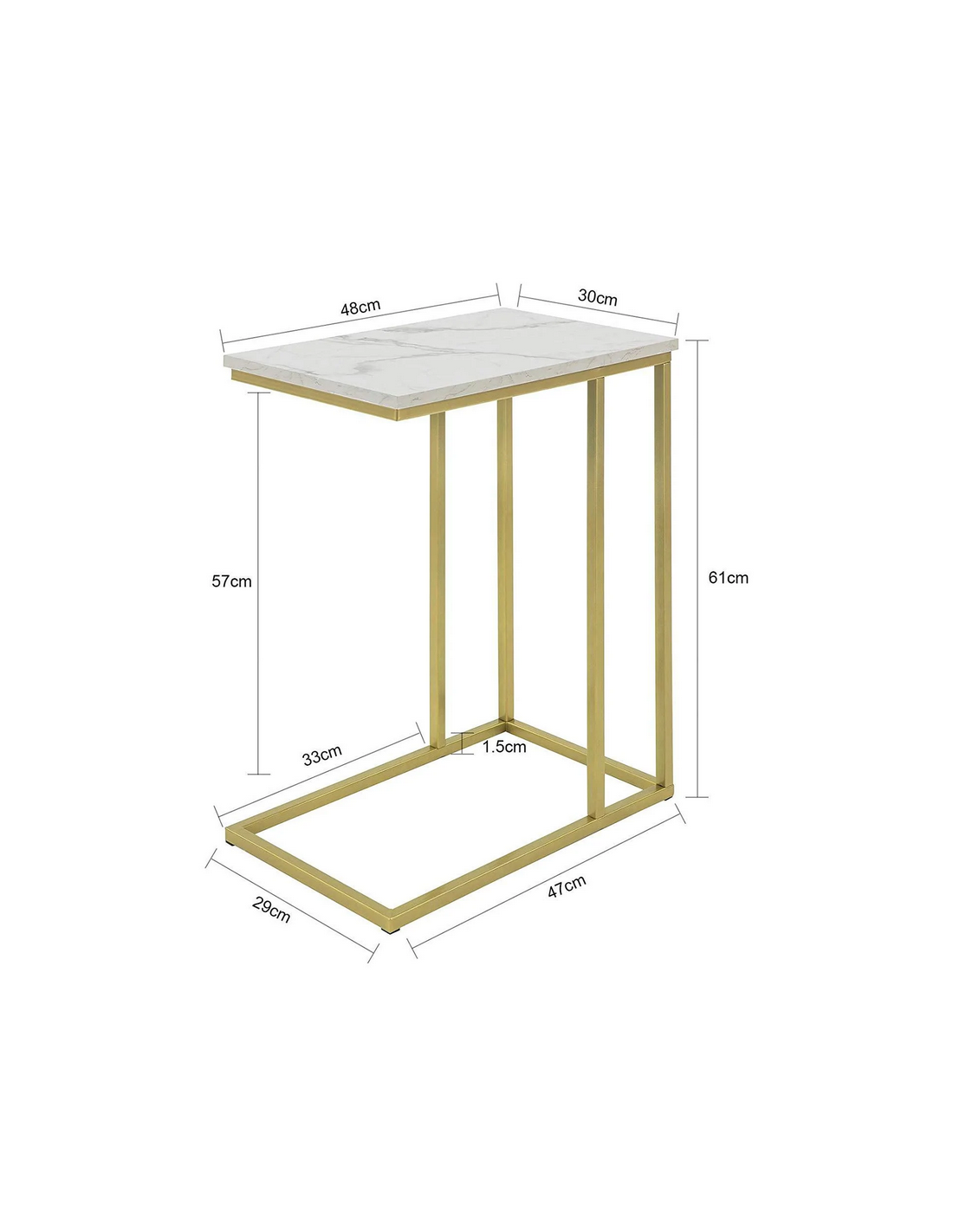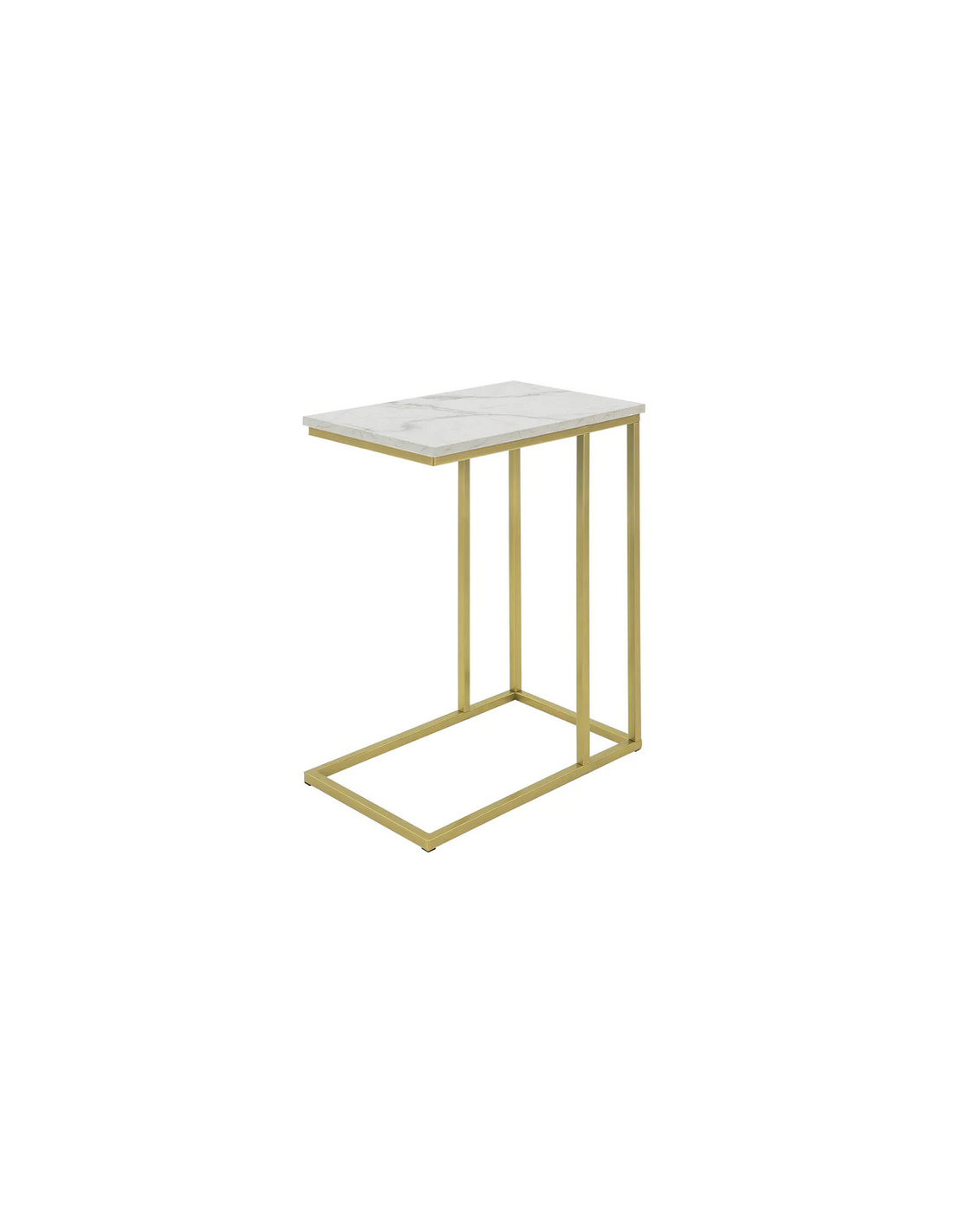 Sengebord i metal og møbelplade H61 x B30 x D48 cm - Guld/Hvid marmor