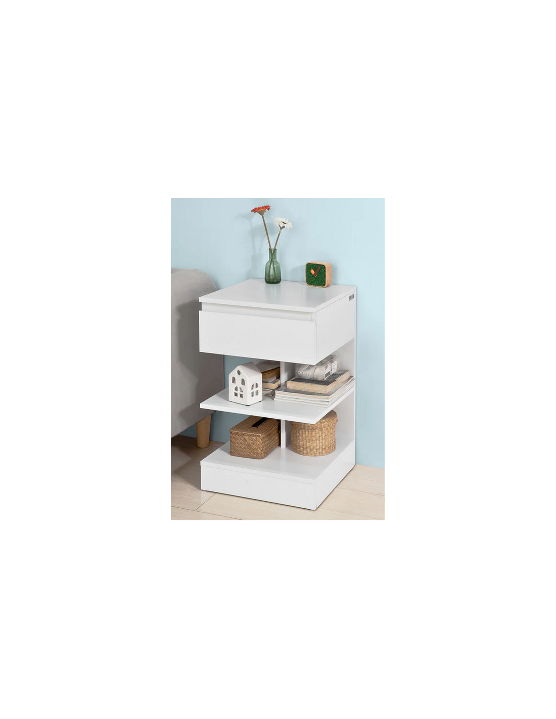 Sengebord i møbelplade H65 x B39 x D39 cm - Hvid