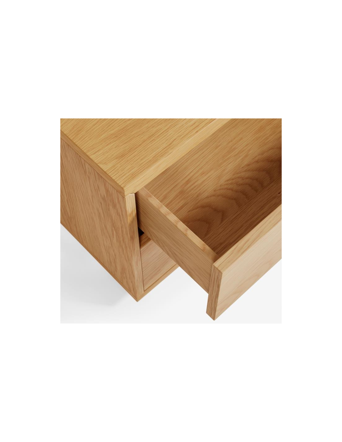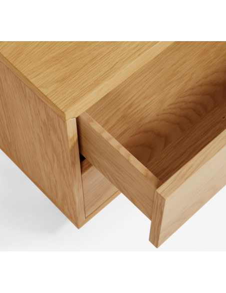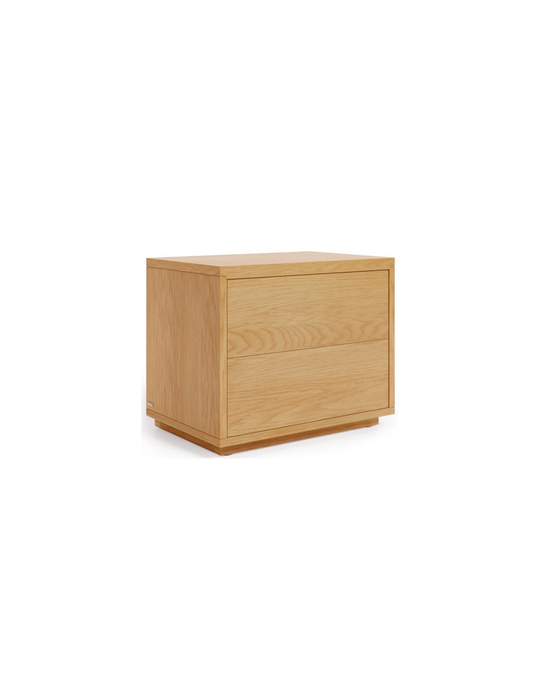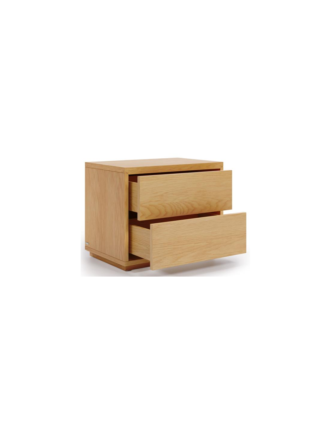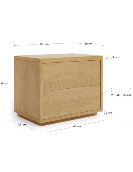 Sengebord med 2 skuffer, udført i et skandinavisk design fra LaForma. Sengebordet er fremstillet i egetræsfinér og måler 53 cm i bredden og 44 cm i højden.