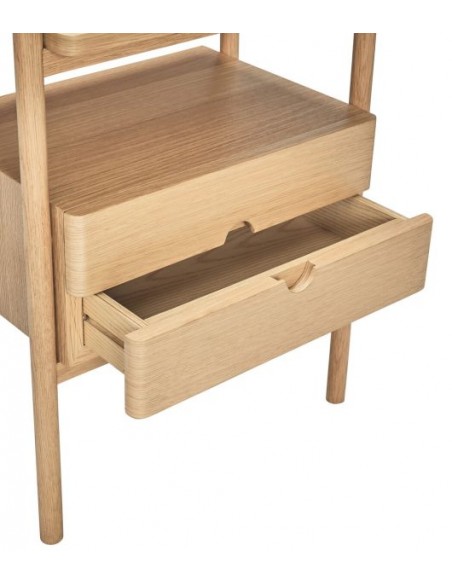 Hübsch Appeal sengebord udført i et design af egetræ og egetræsfinér. Sengebordet måler 57 cm i højden og 45 x 31 cm i bredde og dybde. Sengebordet indeholder 2 skuffer.