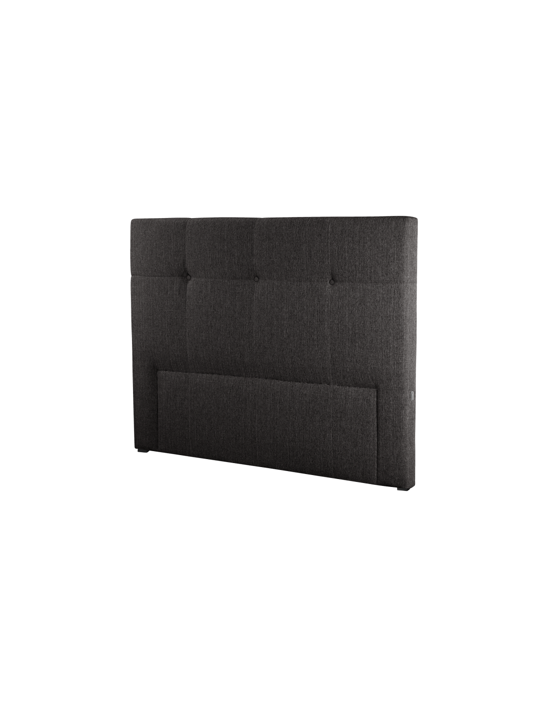 Moderne sengegavl fremstillet i mørkegrå polyester og med ben i sort kunststof. Sengegavlen måler 180 x 118 cm i bredde og højde og 9 cm i dybden. Sengegavlen er til placering mellem væg og senge (ikke til ophæng eller fastmontering på væg eller seng).