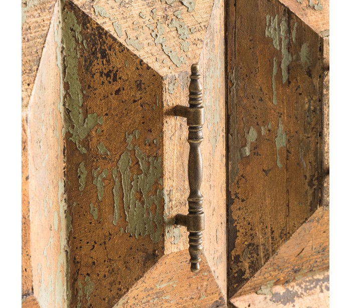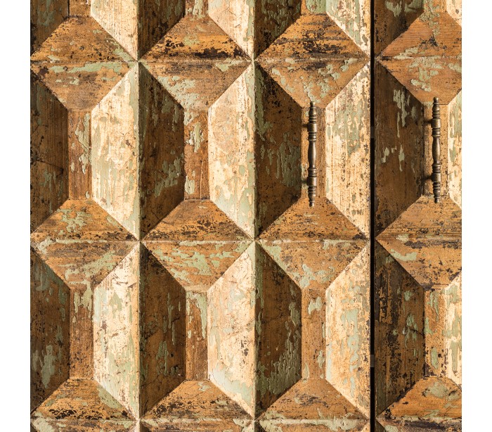Rustikt skab i fyrretræ og jern H140 cm x B96 cm - Antik guld/Antik sort