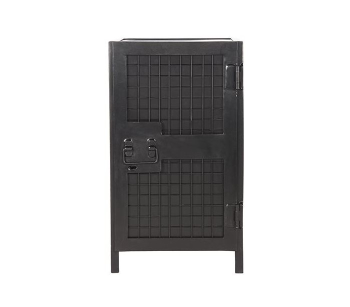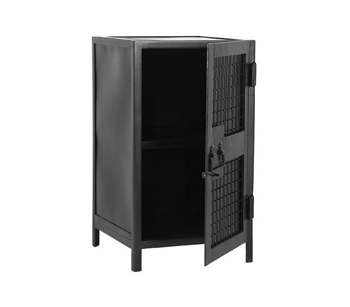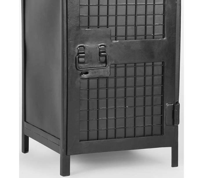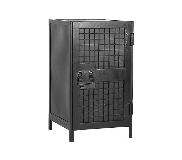 Skab i et industrielt design, fremstillet i sortlakeret metal. I skabet forefindes 2 hylderum. Skabet måler 70 cm i højden og 40 x 40 cm i bredde og dybde.