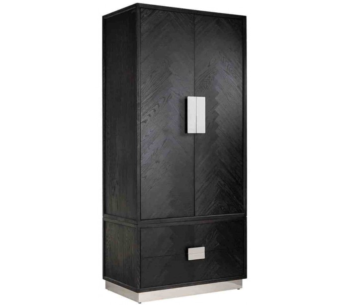 Blackbone klædeskab i egetræ og stål H220 cm - Sort/Sølv