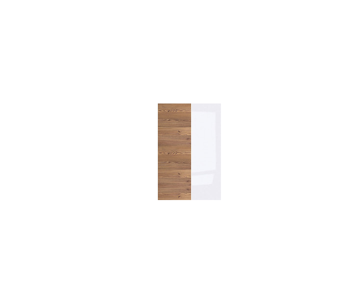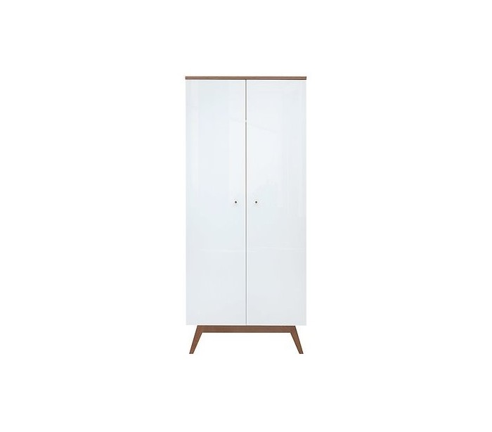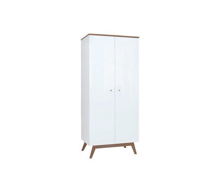 Heda klædeskab udført i et design af hvid højglans, hvid og brun fyrretræ, MDF og finér. Klædeskabet måler 194,5 cm i højden og 85 x 54 cm i bredde og dybde. Skabet indeholder 1 hylderum samt 1 bøjlestang.