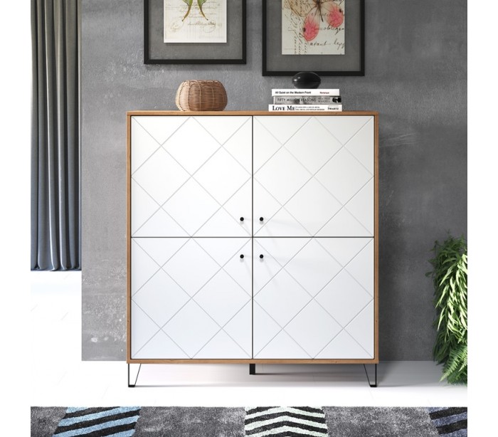 Skab i møbelplade og metal B123 cm - Sort/Hvid/Vild eg