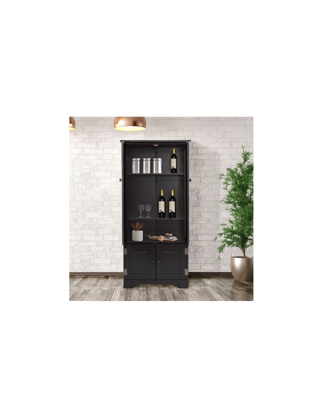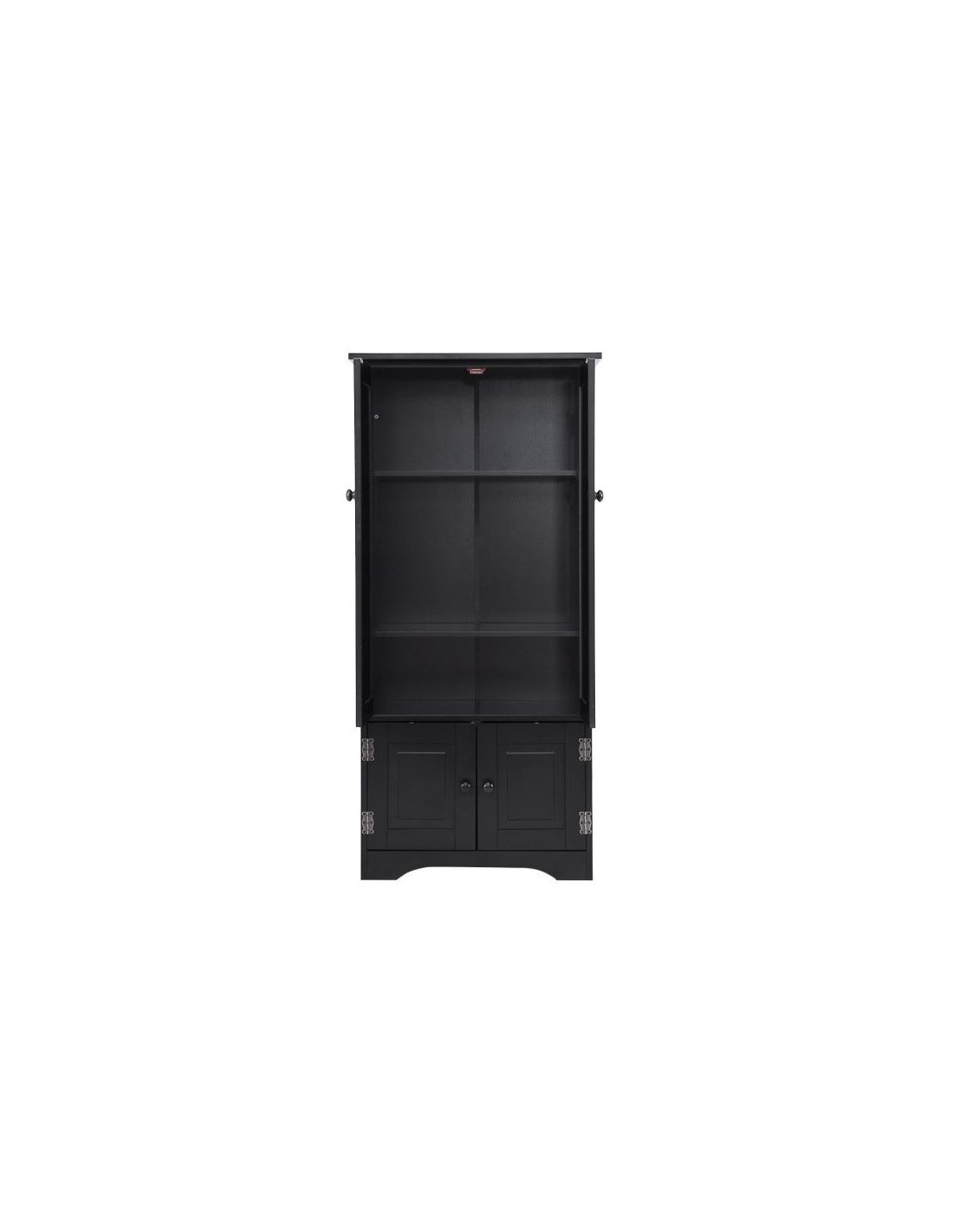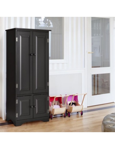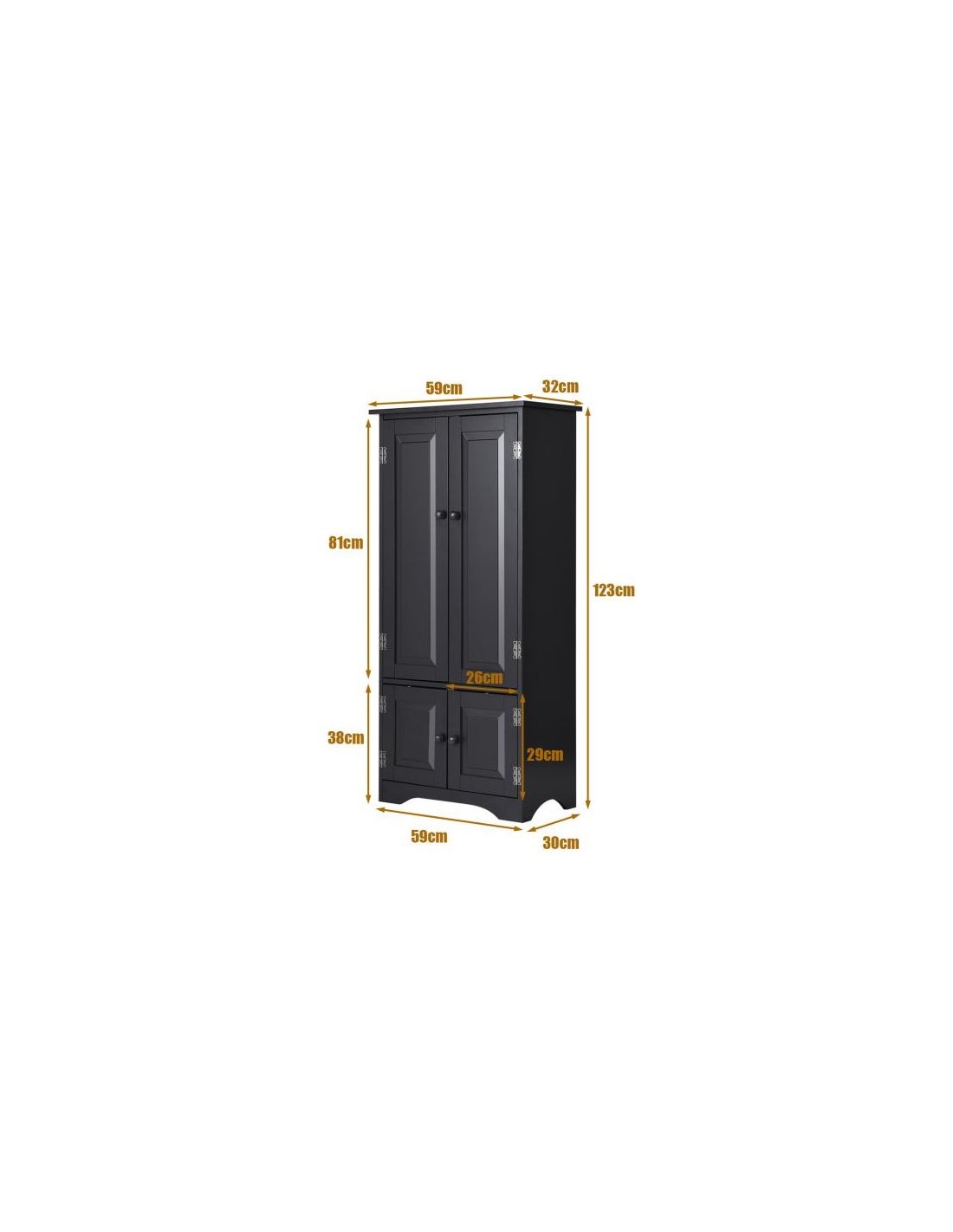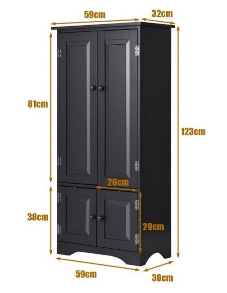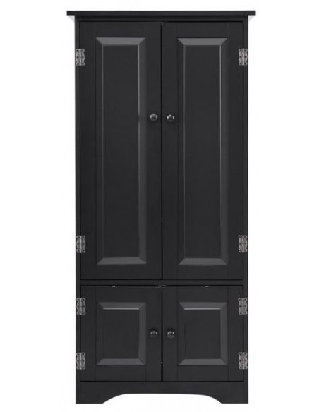 Skab med 2 dobbeltskabe med højdejusterbar hylde, udført i et design af sortlakeret mdf. Skabet måler 123 cm i højden og 59 x 32 cm i bredde og dybde.