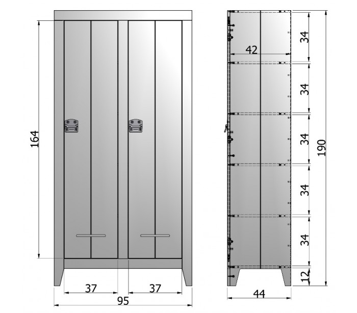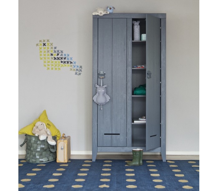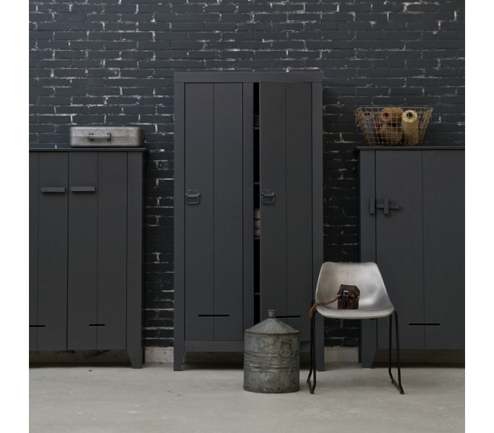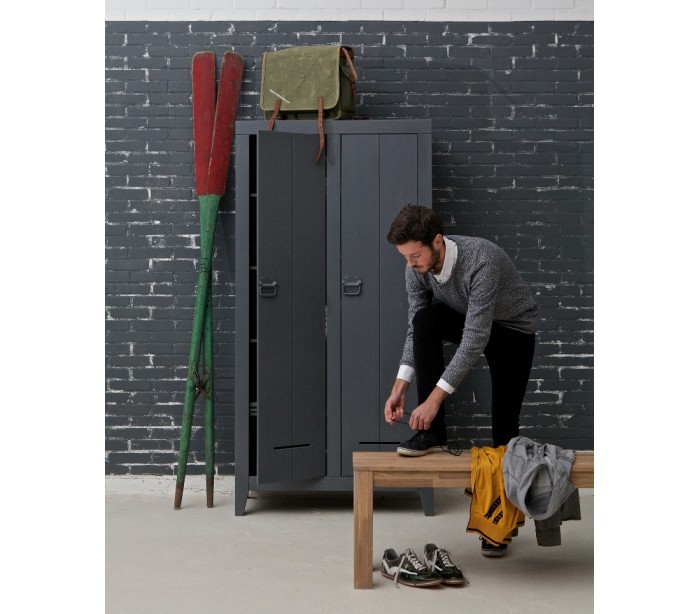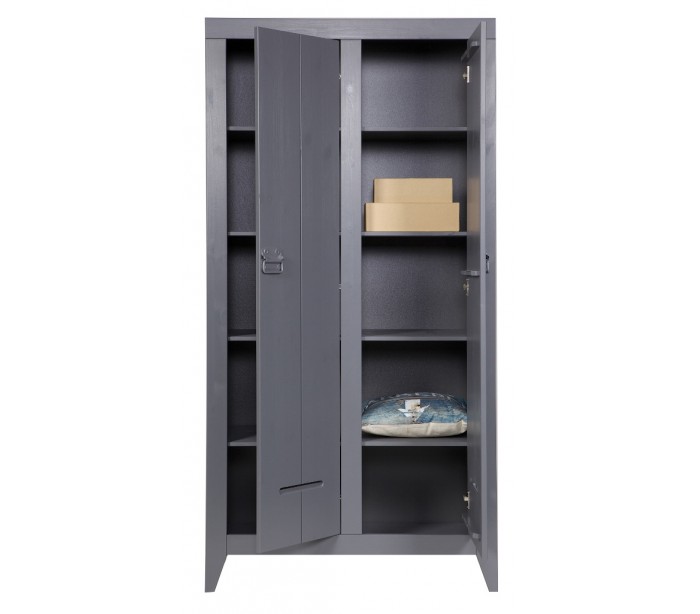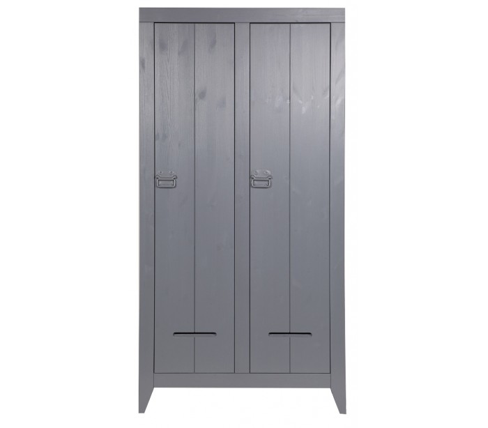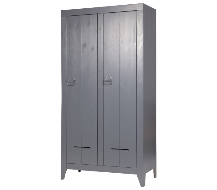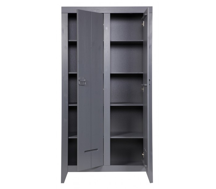 Dobbeltskab i fyrretræ H190 x B95 x D44 cm - Børstet stålgrå