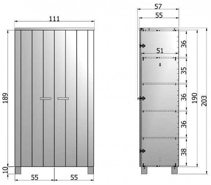 Dobbeltskab i fyrretræ H202 x B111 x D55 cm - Børstet stålgrå