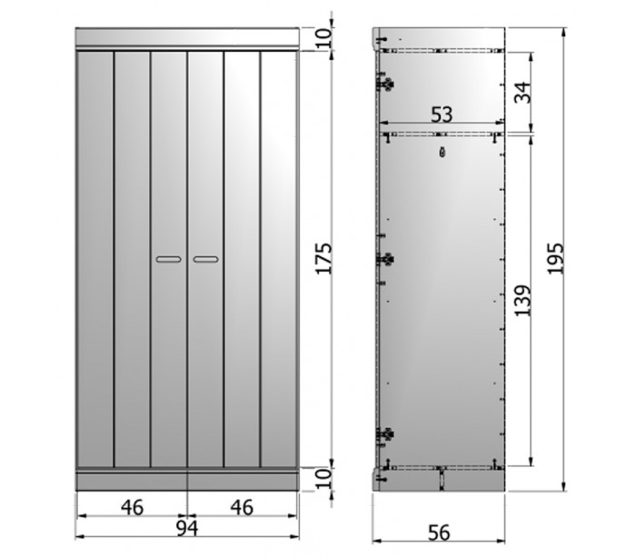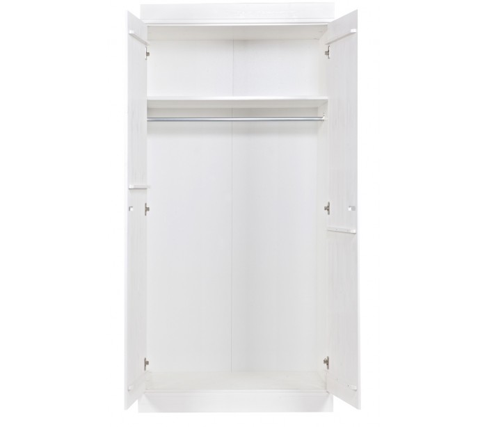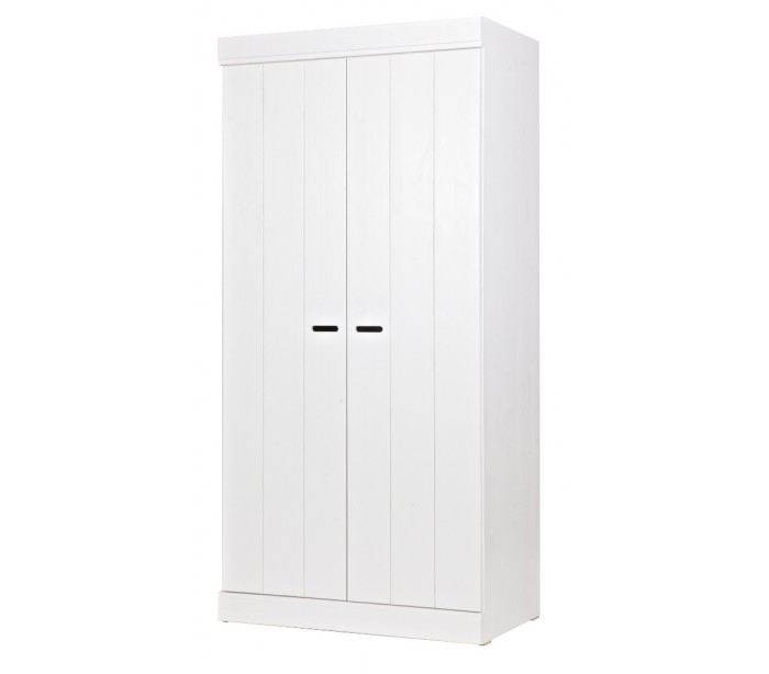 Klædeskab i et moderne design, fremstillet i hvidlakeret fyrretræ. Skabet indeholder 1 hylderum og 1 bøjlestang. Skabet måler 195 cm i højden og 94 x 53 cm i bredde og dybde.