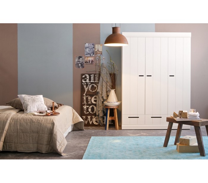 Klædeskab med skuffer i lakeret fyrretræ H195 x B140 x D53 cm - Hvid