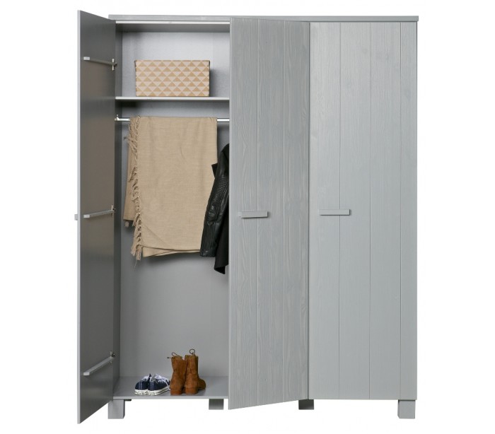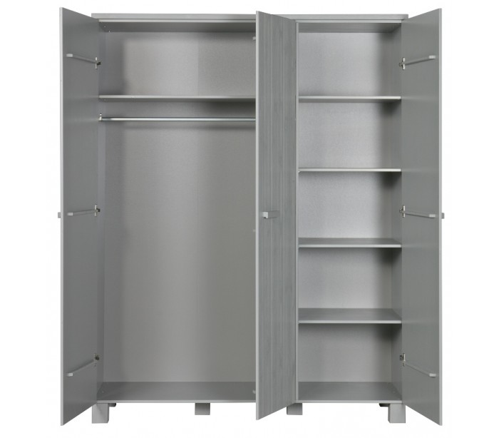 3-delt klædeskab i fyrretræ H202 x B158 x D55 cm - Børstet grå
