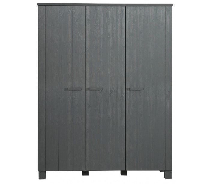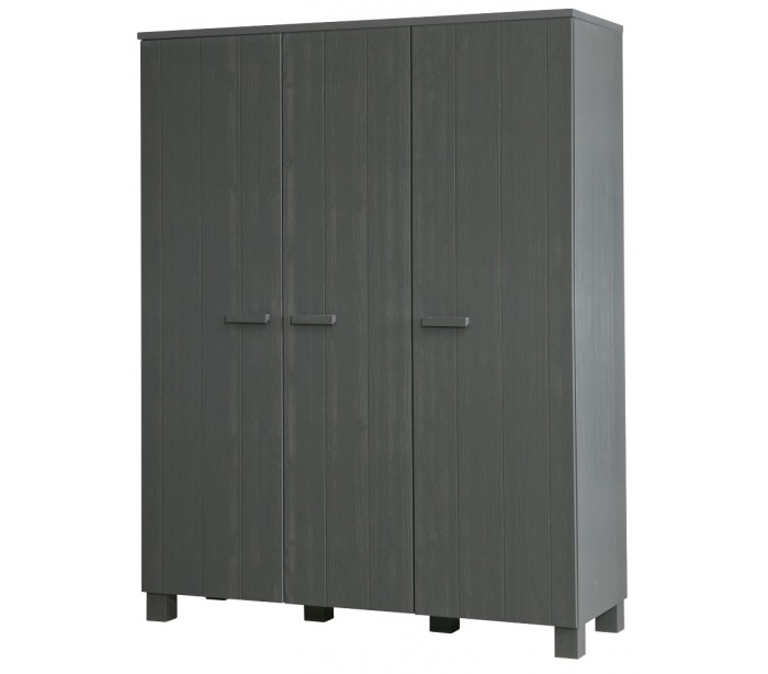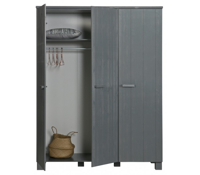 3-delt klædeskab i fyrretræ H202 x B158 x D55 cm - Børstet stålgrå