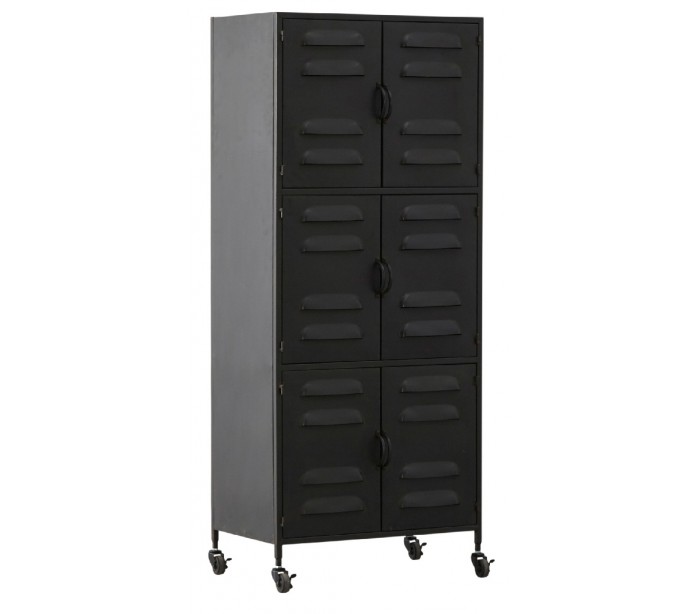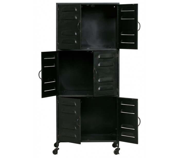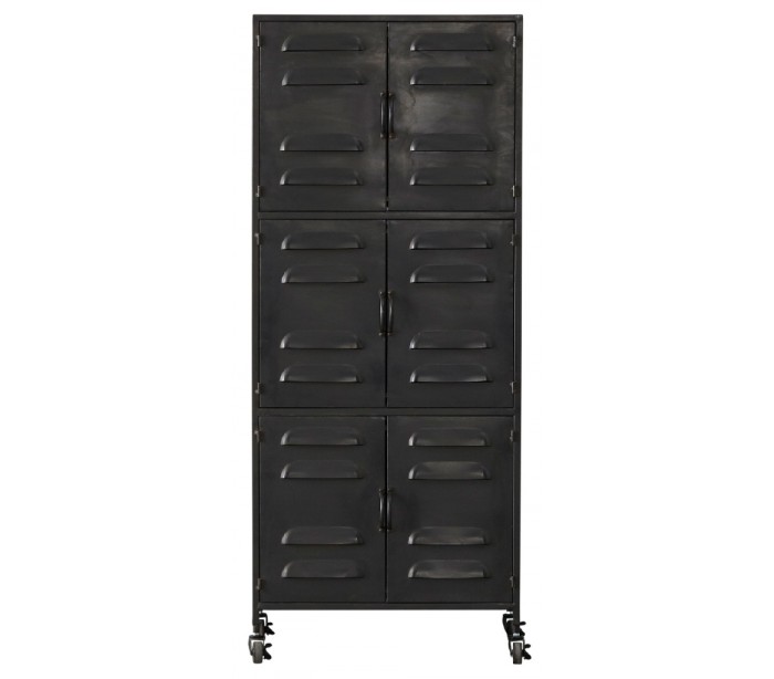 Industrielt kabinet med 6 skabslåger, udført i et design af antik sortlakeret metal. Skabet indeholder 3 hylderum, og måler 146 cm i højden og 60 x 41 cm i bredde og dybde.