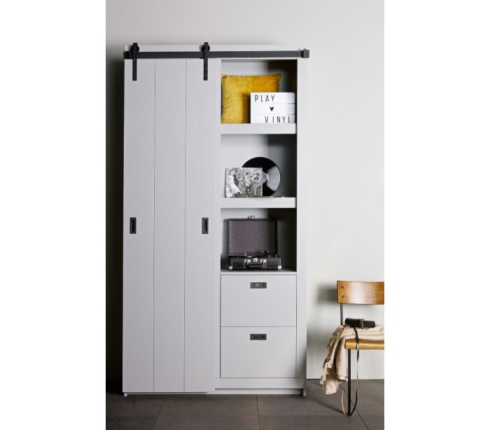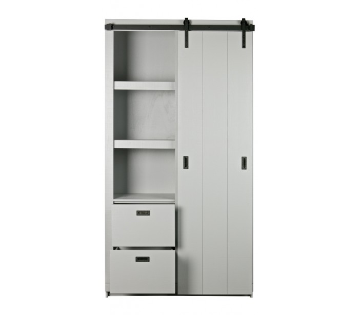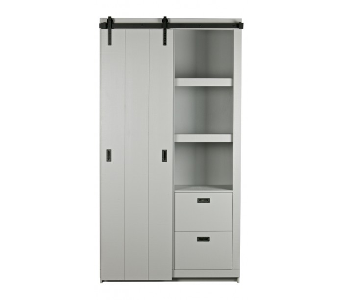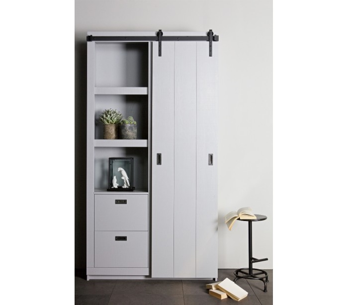 Skab med skydelåge i lakeret fyrretræ H232 x B122 x D37 cm - Børstet betongrå