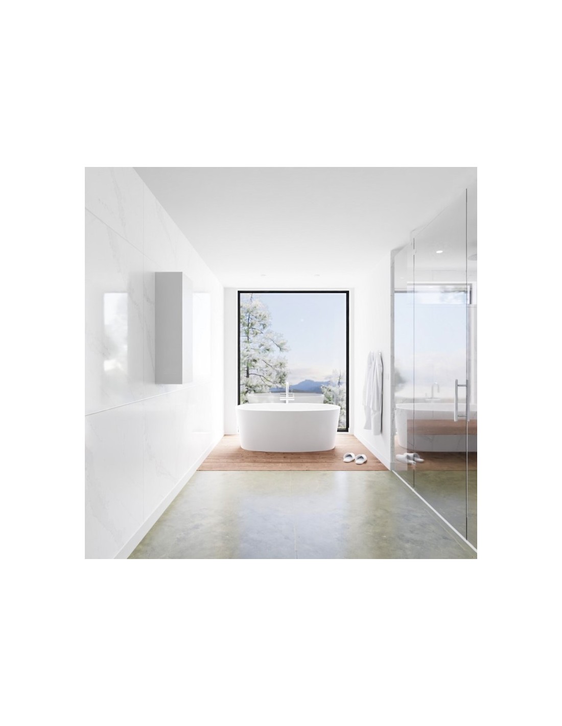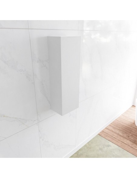 LAGOM skab til badeværelset, udført i et moderne og stilrent design i det solide materiale "Solid Surface", der ikke alene giver badeværelset et stilrent design, men samtidig er lækkert at røre ved. Skabet er med højrevendt push-open skabslåge (åbner med uret). Skabet måler 90 x 30 cm i højde og bredde (ydermål).