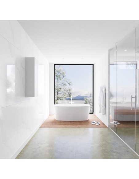 LAGOM højrevendt skab til badeværelset 90 x 30 cm Solid surface - Talkum