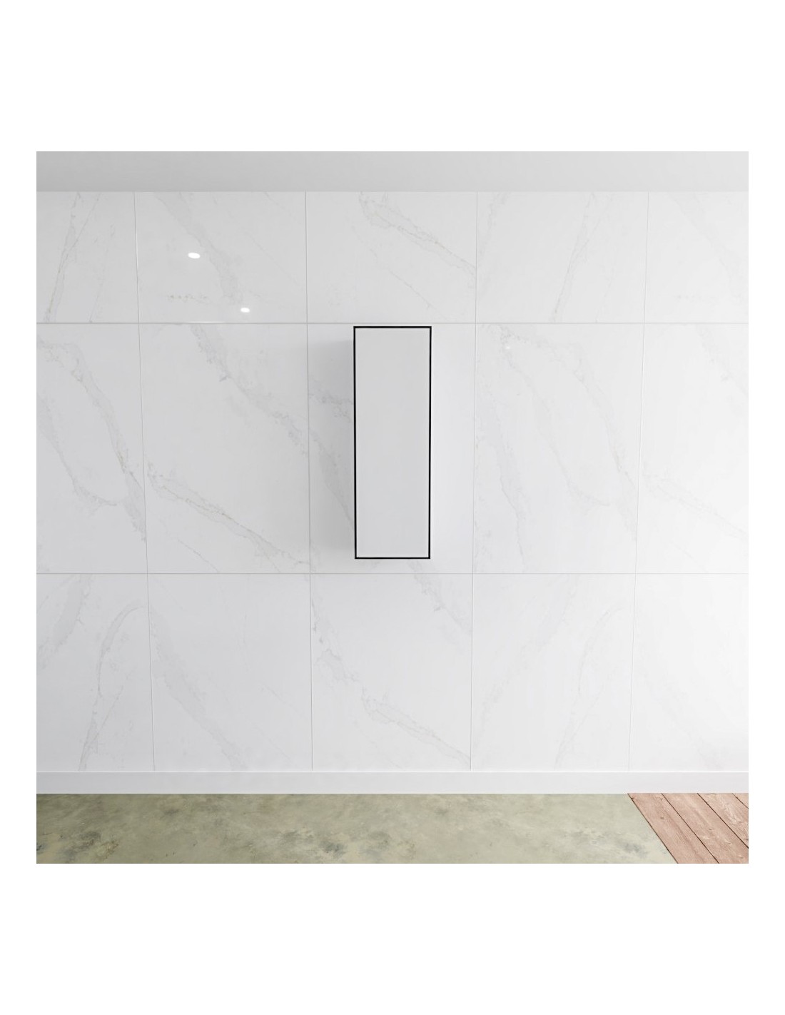 LAGOM skab til badeværelset, udført i et moderne og stilrent design i det solide materiale "Solid Surface", der ikke alene giver badeværelset et stilrent design, men samtidig er lækkert at røre ved. Skabet er med højrevendt push-open skabslåge (åbner med uret). Skabet måler 90 x 30 cm i højde og bredde (ydermål).