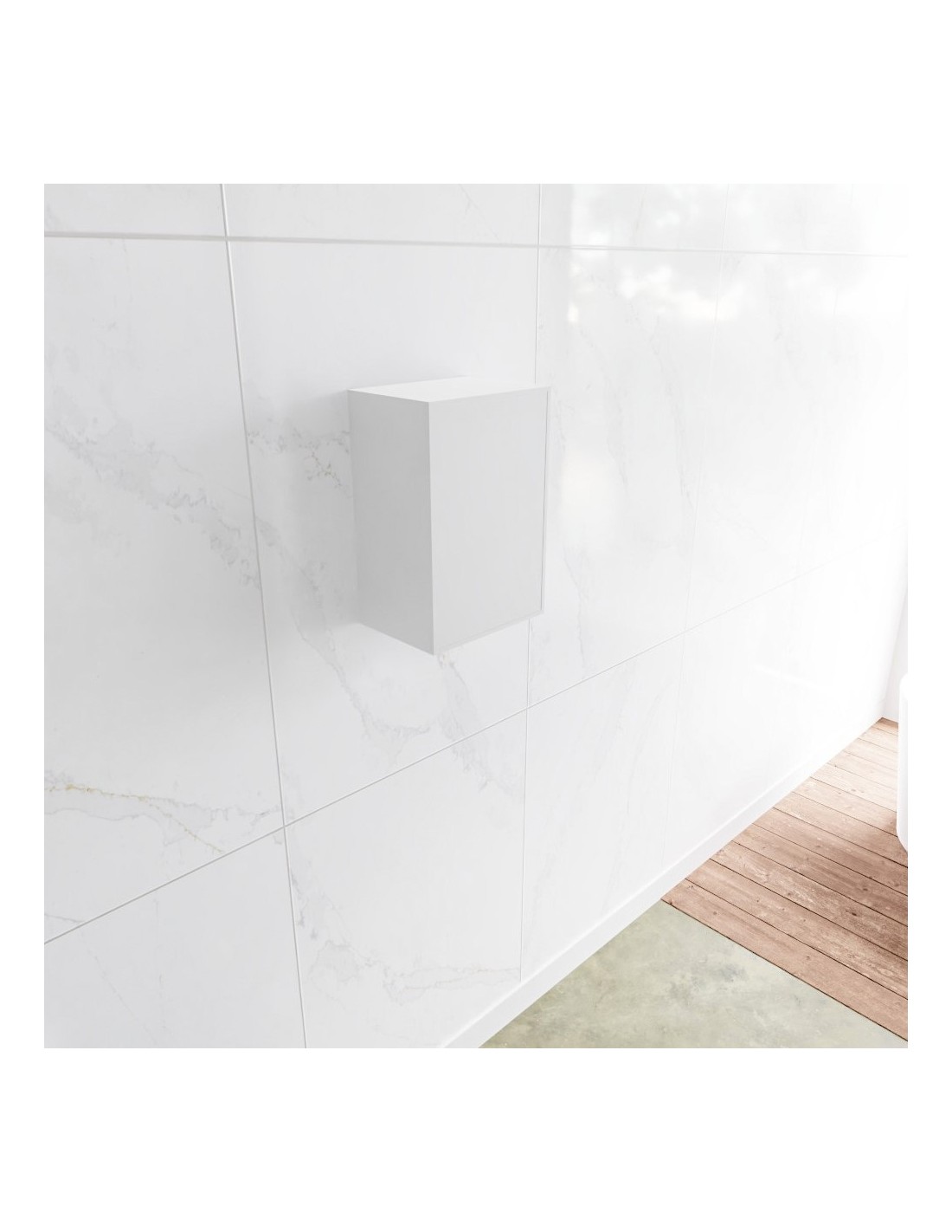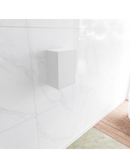 LAGOM skab til badeværelset, udført i et moderne og stilrent design i det solide materiale "Solid Surface", der ikke alene giver badeværelset et stilrent design, men samtidig er lækkert at røre ved. Skabet er med venstrevendt push-open skabslåge (åbner mod uret). Skabet måler 45 x 30 cm i højde og bredde (ydermål).