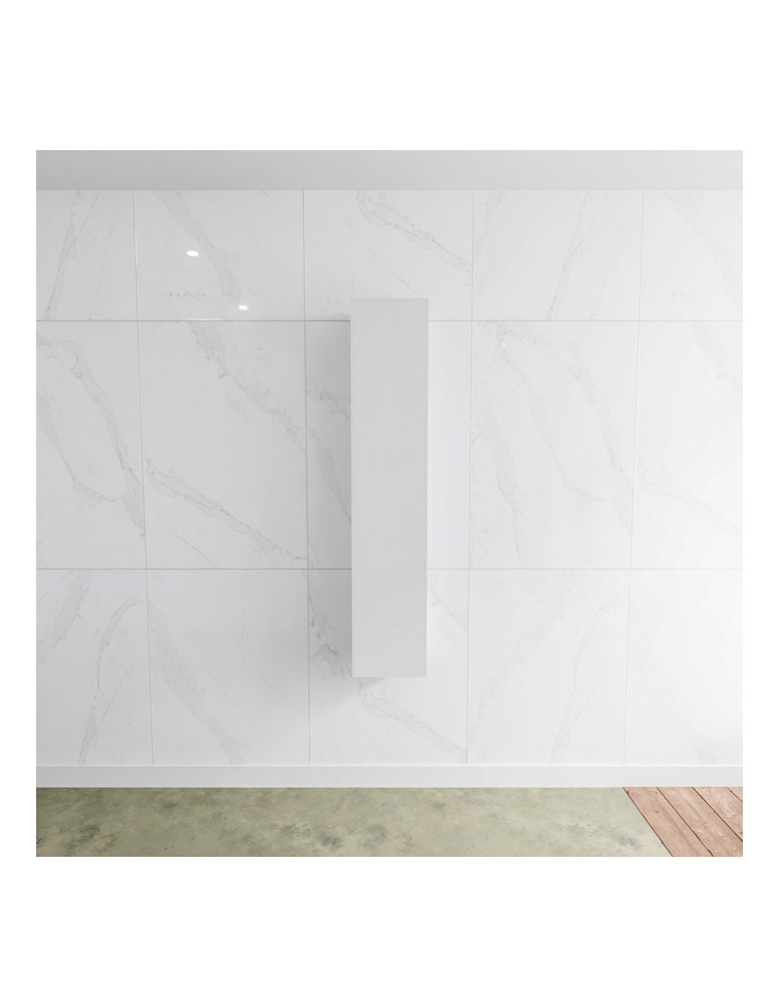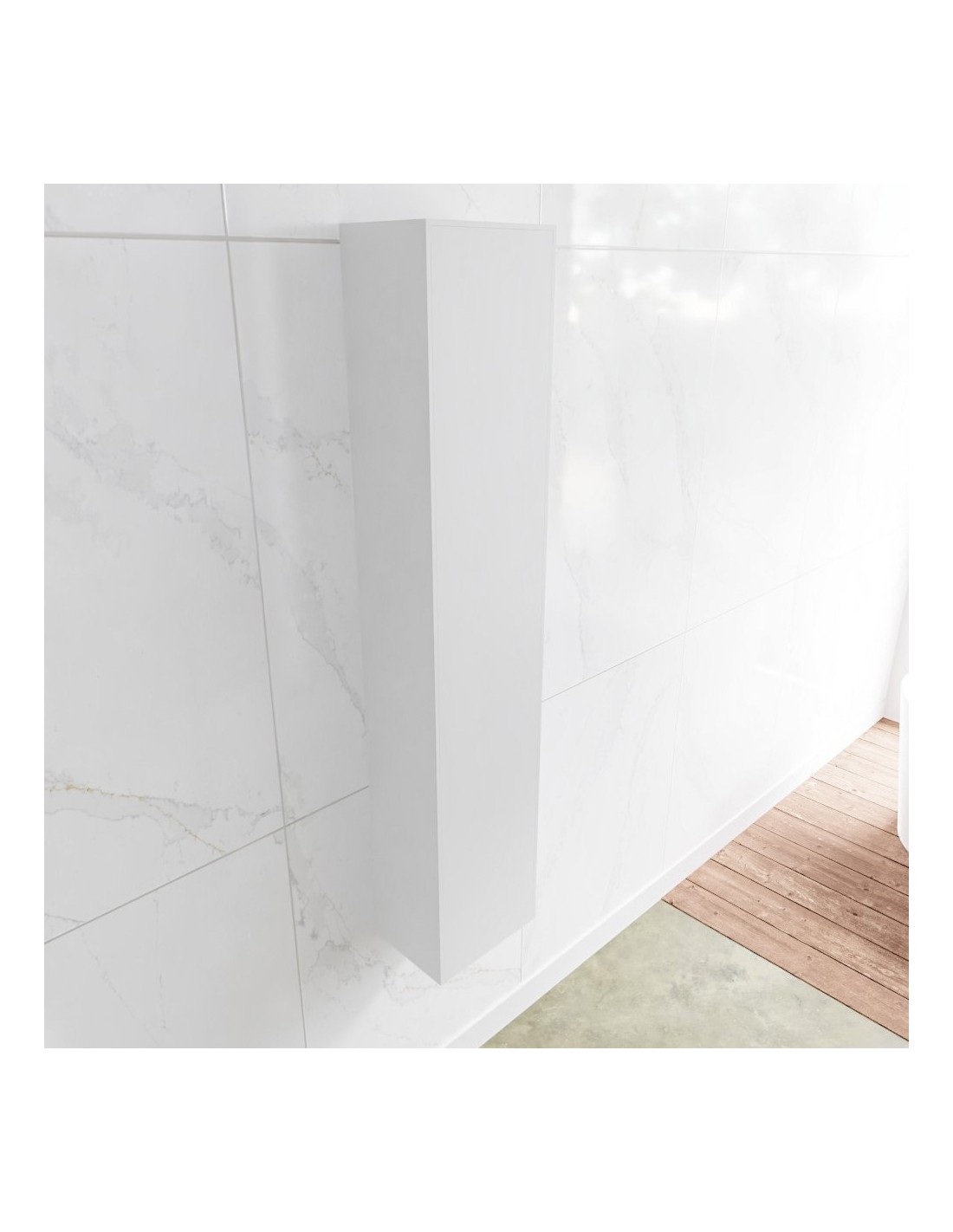 LAGOM skab til badeværelset, udført i et moderne og stilrent design i det solide materiale "Solid Surface", der ikke alene giver badeværelset et stilrent design, men samtidig er lækkert at røre ved. Skabet er med venstrevendt push-open skabslåge (åbner mod uret). Skabet måler 150 x 30 cm i højde og bredde (ydermål).