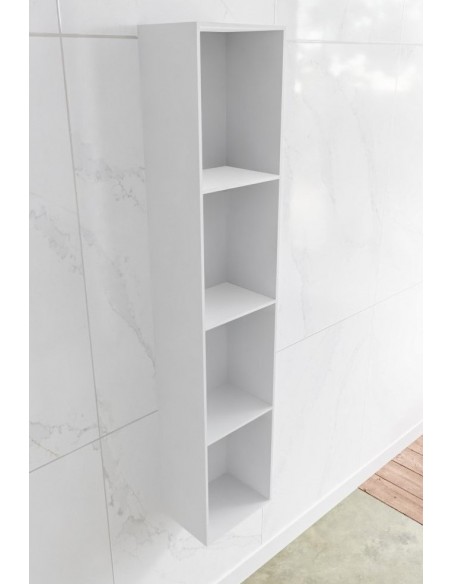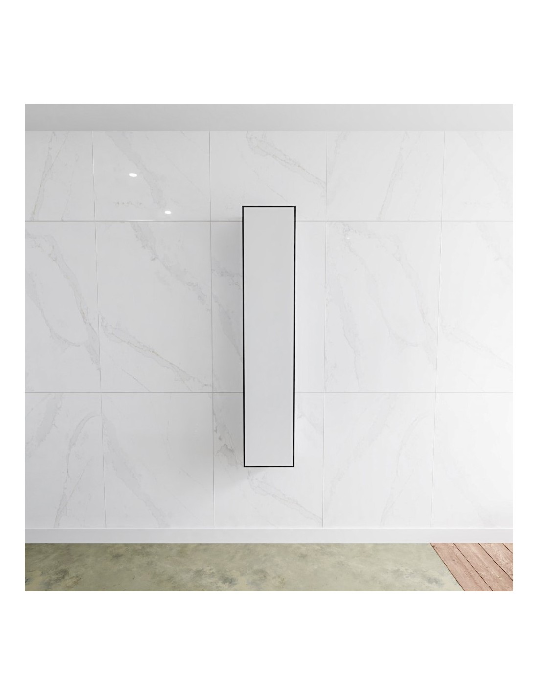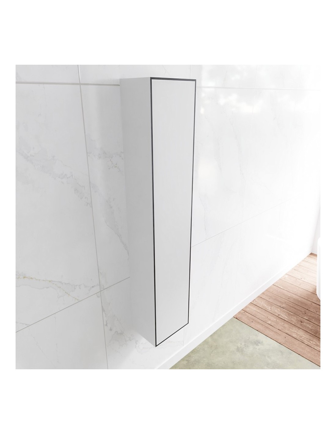 LAGOM skab til badeværelset, udført i et moderne og stilrent design i det solide materiale "Solid Surface", der ikke alene giver badeværelset et stilrent design, men samtidig er lækkert at røre ved. Skabet er med højrevendt push-open skabslåge (åbner med uret). Skabet måler 150 x 30 cm i højde og bredde (ydermål).