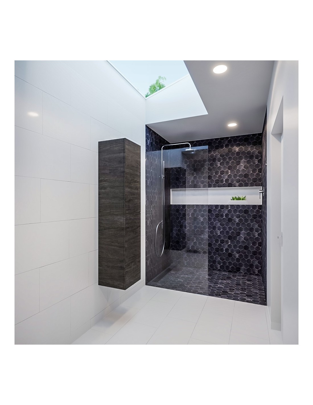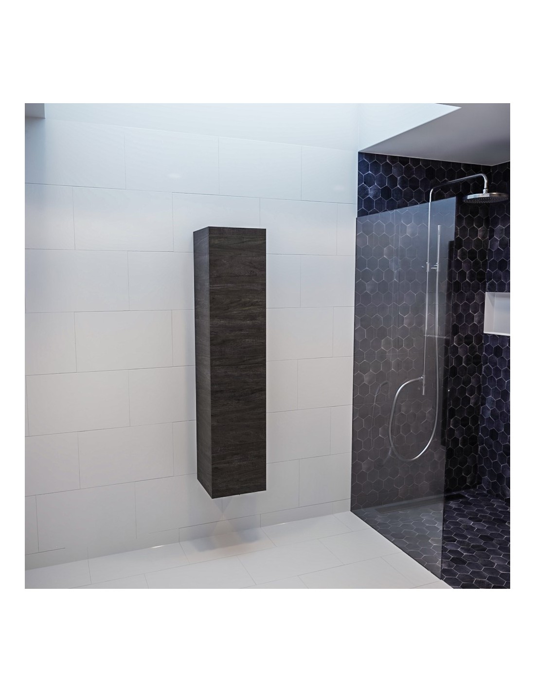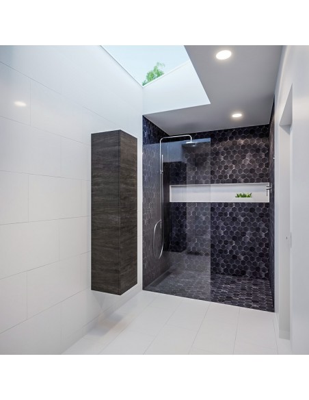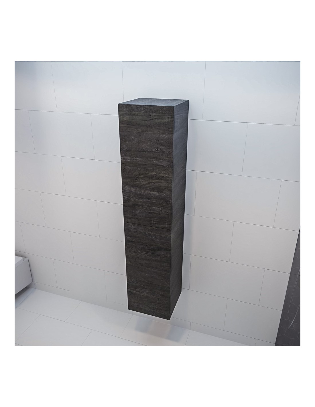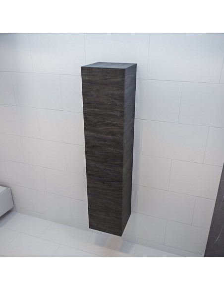 BEAM højskab til badeværelset, udført i et design af mørkebrun egetræsfarvet MDF. Skabet kan spejlvendes og leveres med 2 softclose skabslåger. Hvert skab indeholder 2 hylderum. Skabet måler 160 x 35 cm i højde og bredde (ydermål).