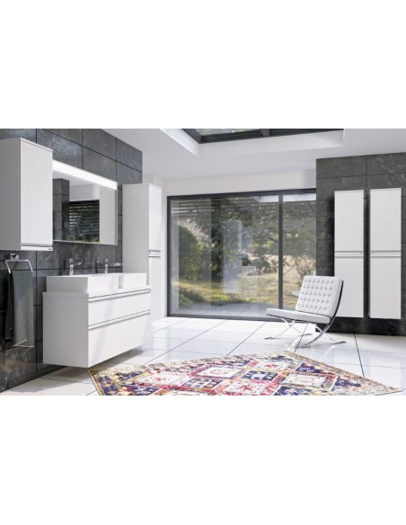 BRAVE Venstrevendt skab til badeværelset, udført i et moderne design af hvid højglans MDF. Skabet kommer med 2 hylder i glas, der kan justeres og med låge med softclose. Skabet måler 82 cm i højden og 35 cm i bredden.