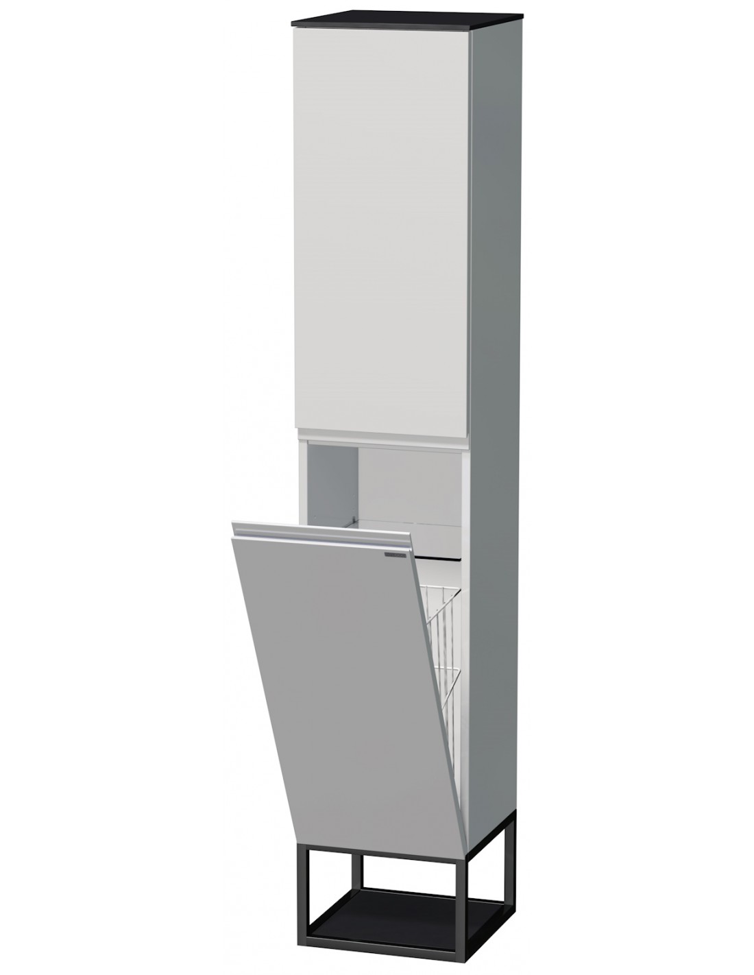 TARA Venstrevendt skab med tøjkurv til badeværelse H183 cm MDF - Sort/Hvid højglans