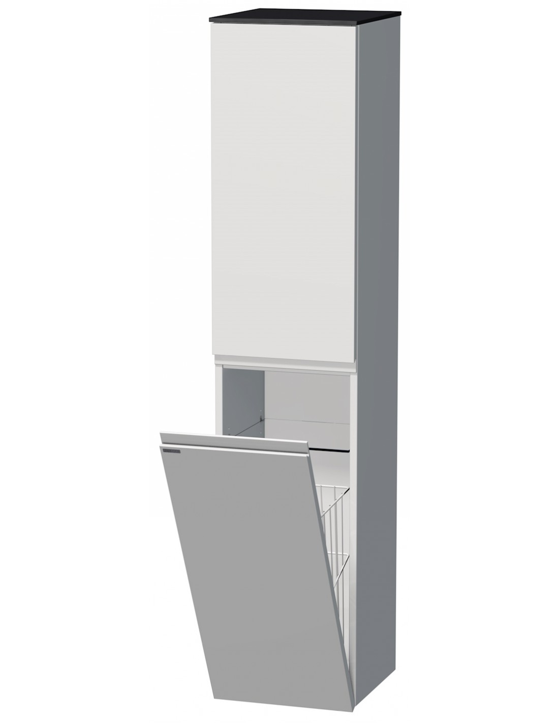 TARA Højrevendt skab med tøjkurv til badeværelse H161 cm MDF - Sort/Mat hvid