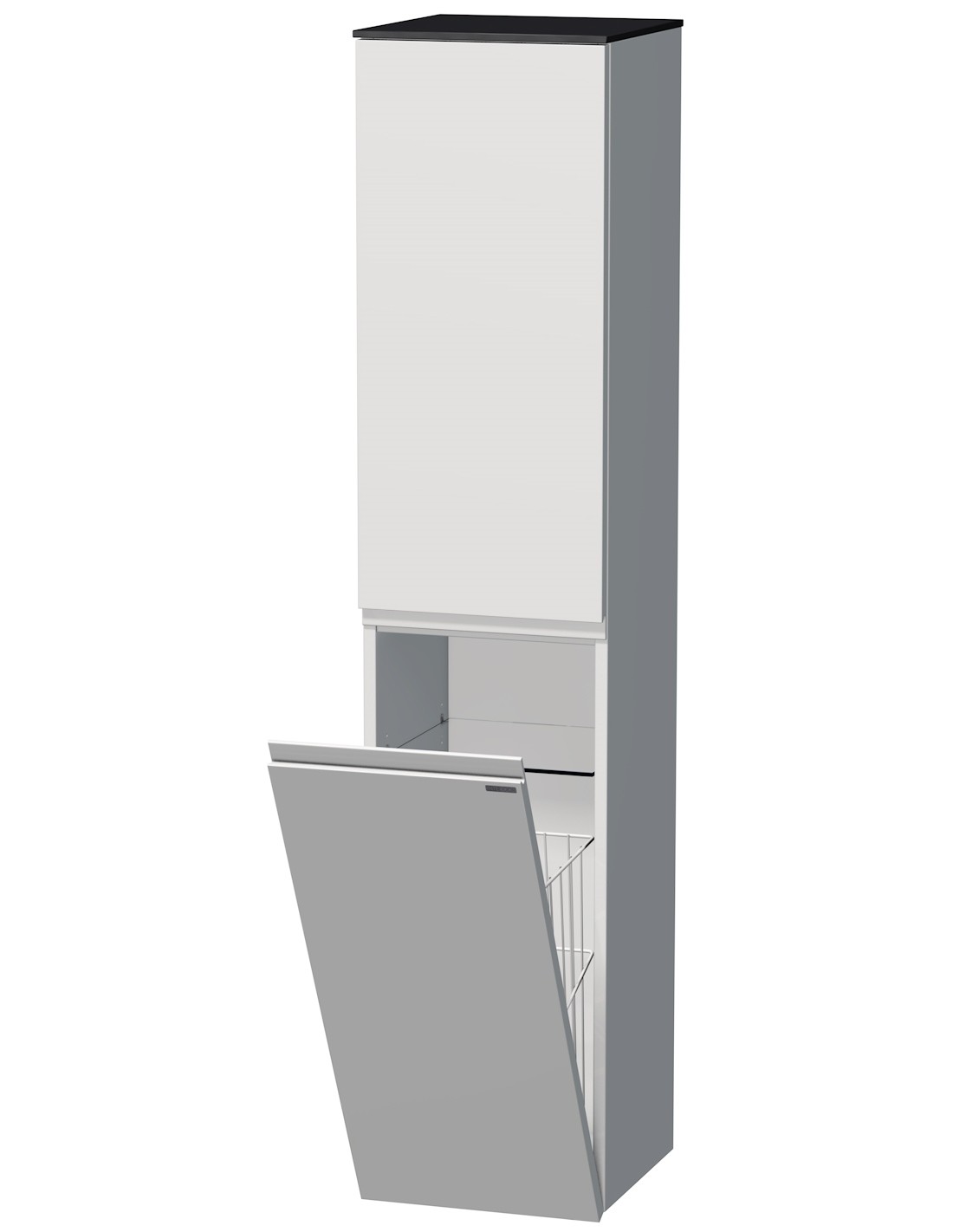TARA Venstrevendt skab med tøjkurv til badeværelse H161 cm MDF - Sort/Mat hvid