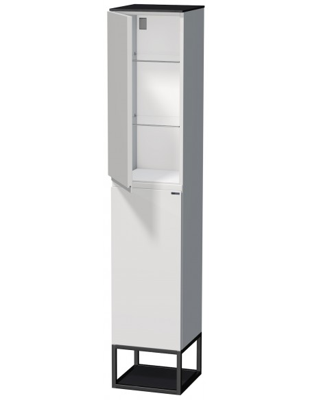 TARA Venstrevendt skab til badeværelset, udført i et moderne design af MDF og sortlakeret aluminium. Skabet kommer med 4 hylder i glas, der kan justeres og med låger med softclose. Skabet måler 183 cm i højden (161 cm for selve skabet i sig selv) i højden og 35 cm i bredden.