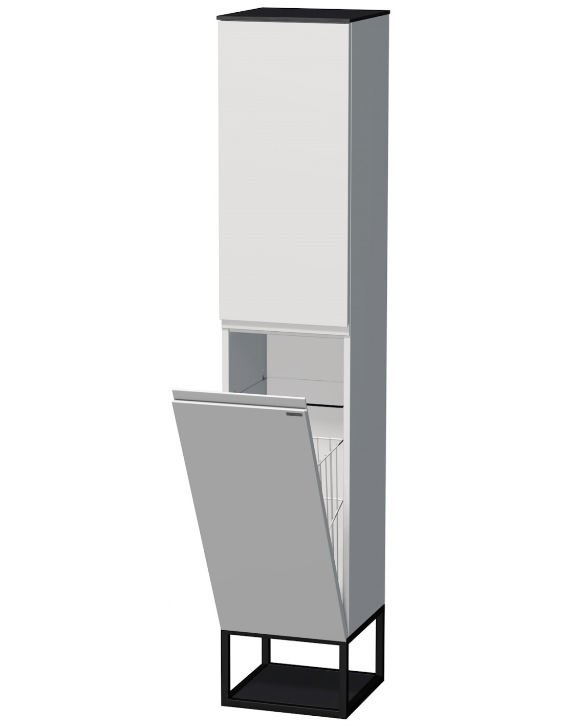 TARA Venstrevendt skab med tøjkurv til badeværelse H183 cm MDF - Sort/Mat hvid