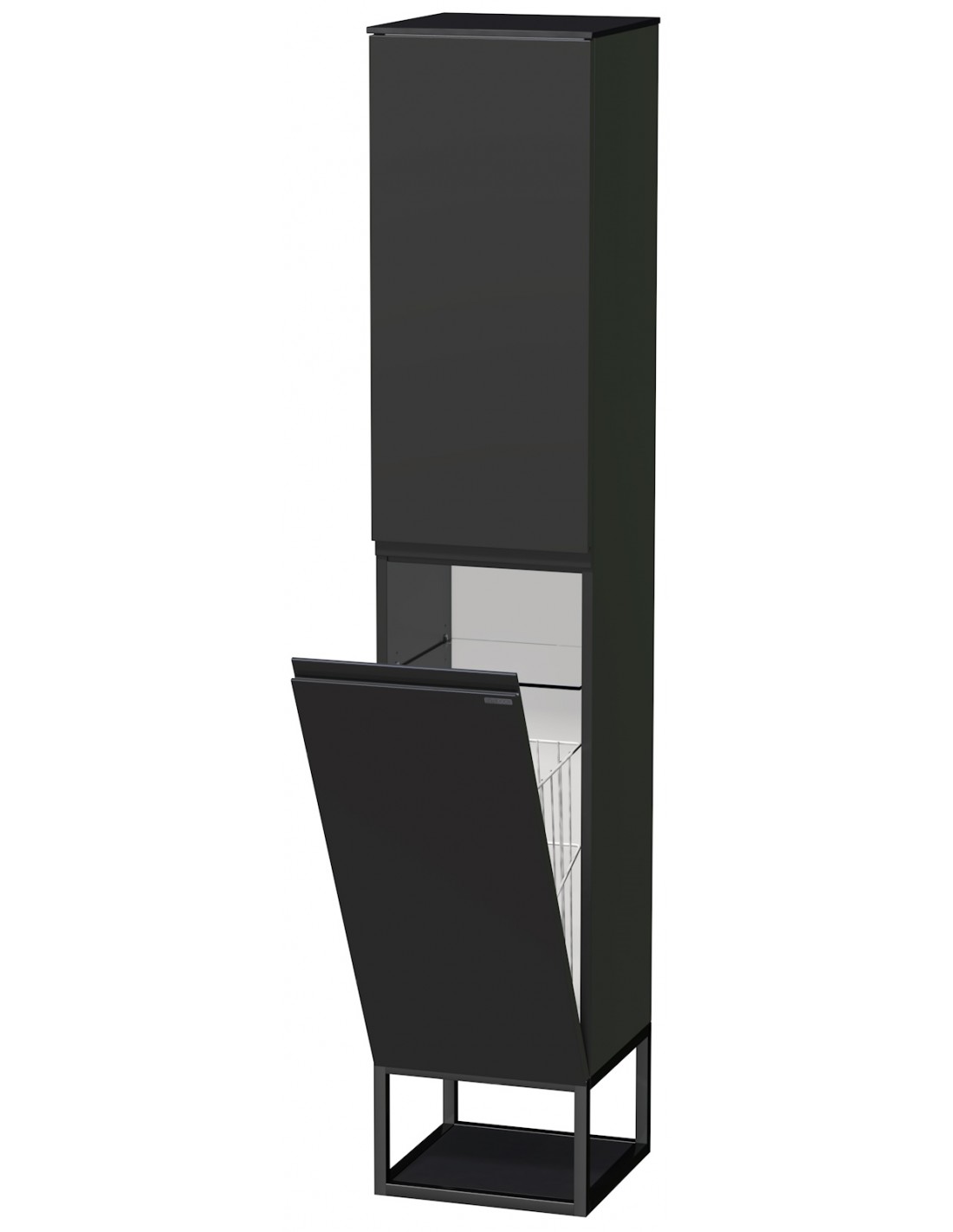 TARA Venstrevendt skab med tøjkurv til badeværelse H183 cm MDF - Sort/Antracit højglans