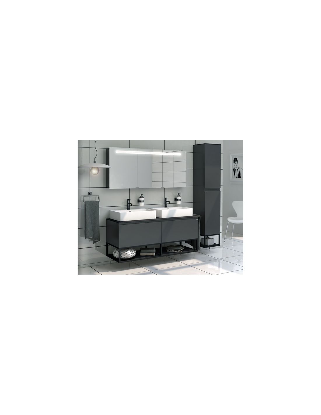 TARA Skab med tøjkurv til badeværelse H81 cm MDF - Sort/Mat antracit