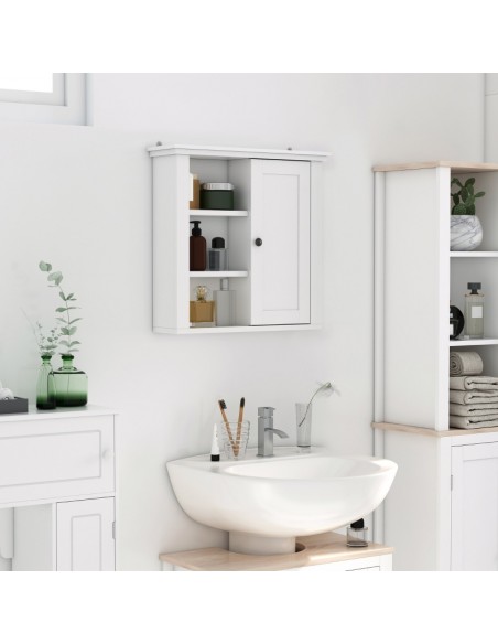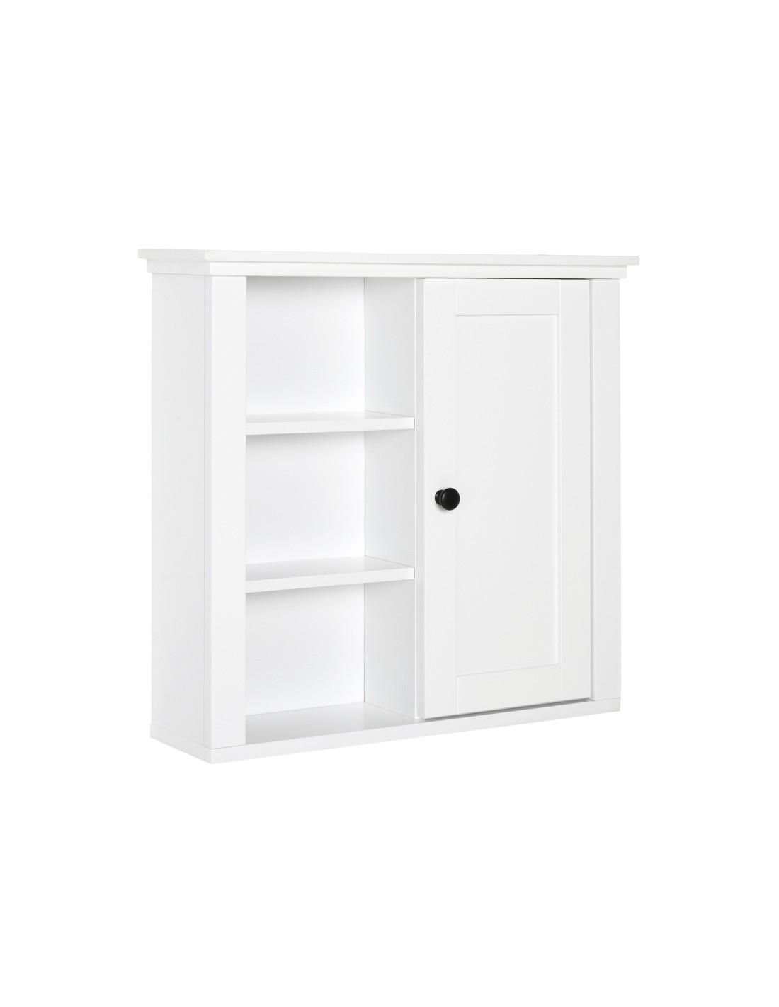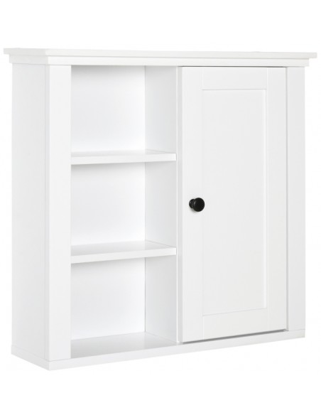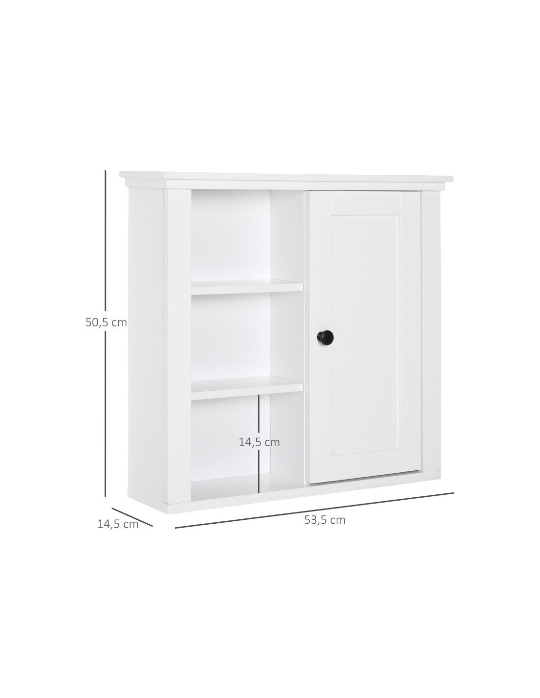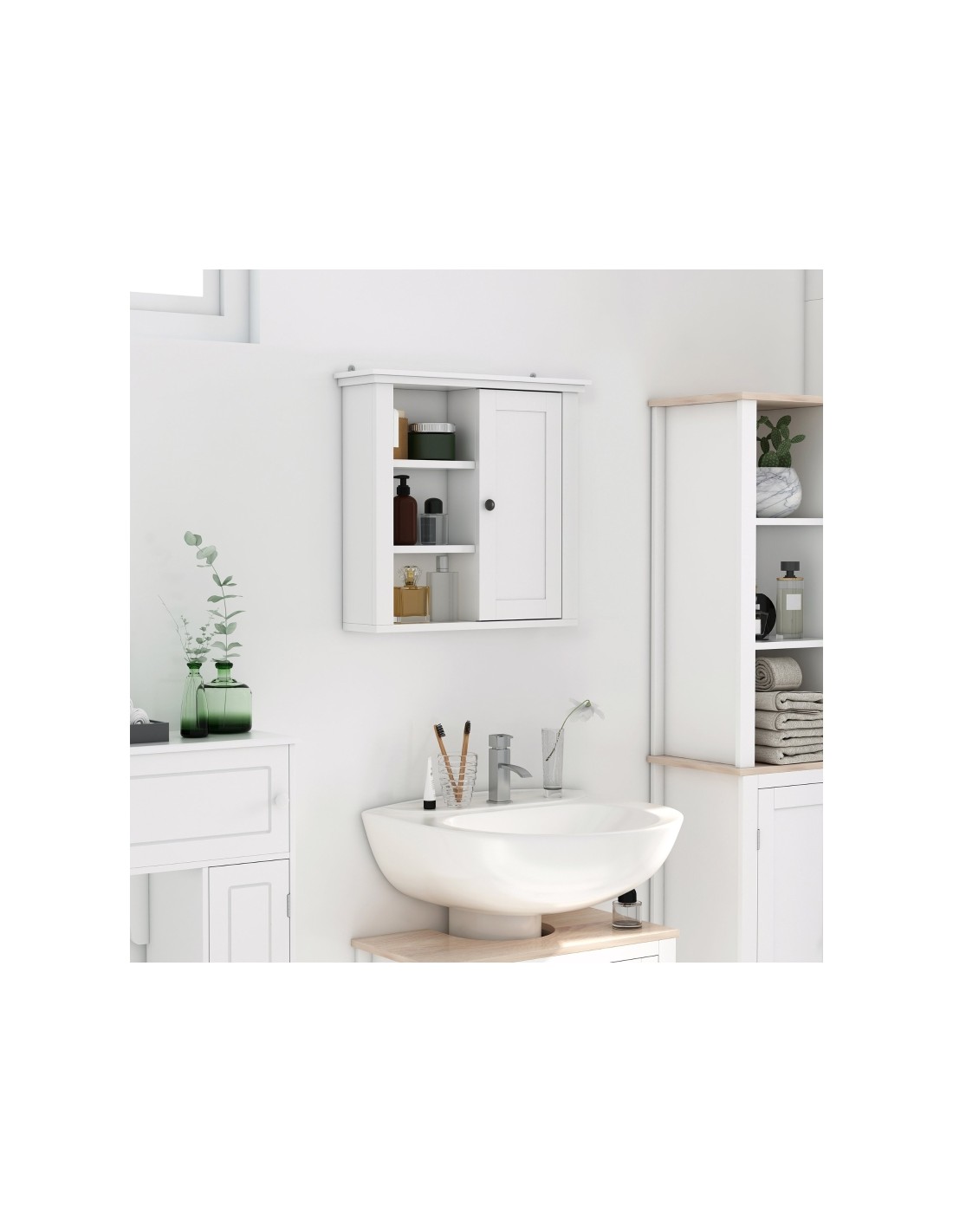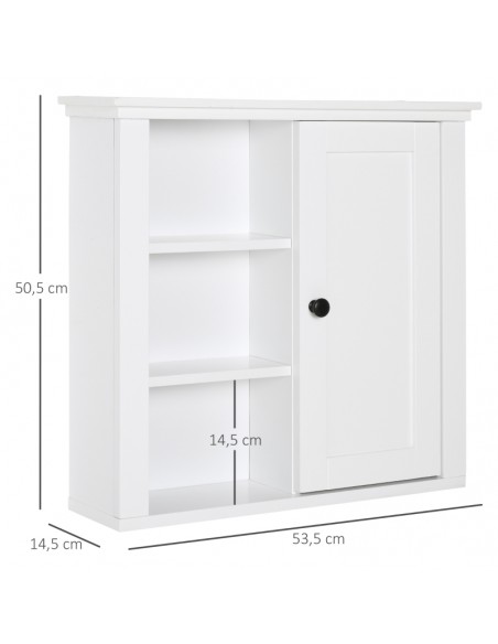 Skab til badeværelset, udført i et design af møbelplade. Skabet måler 50,5 cm i højden og 53,5 x 14,5 cm i bredde og dybde. Skabet indeholder 3 åbne hylderum og 1 skab med opbevaringsrum.