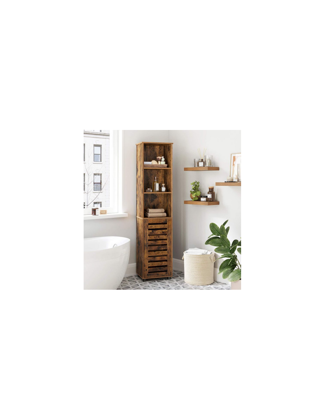 Skab til badeværelset i møbelplade H167 x B40 cm - Brun