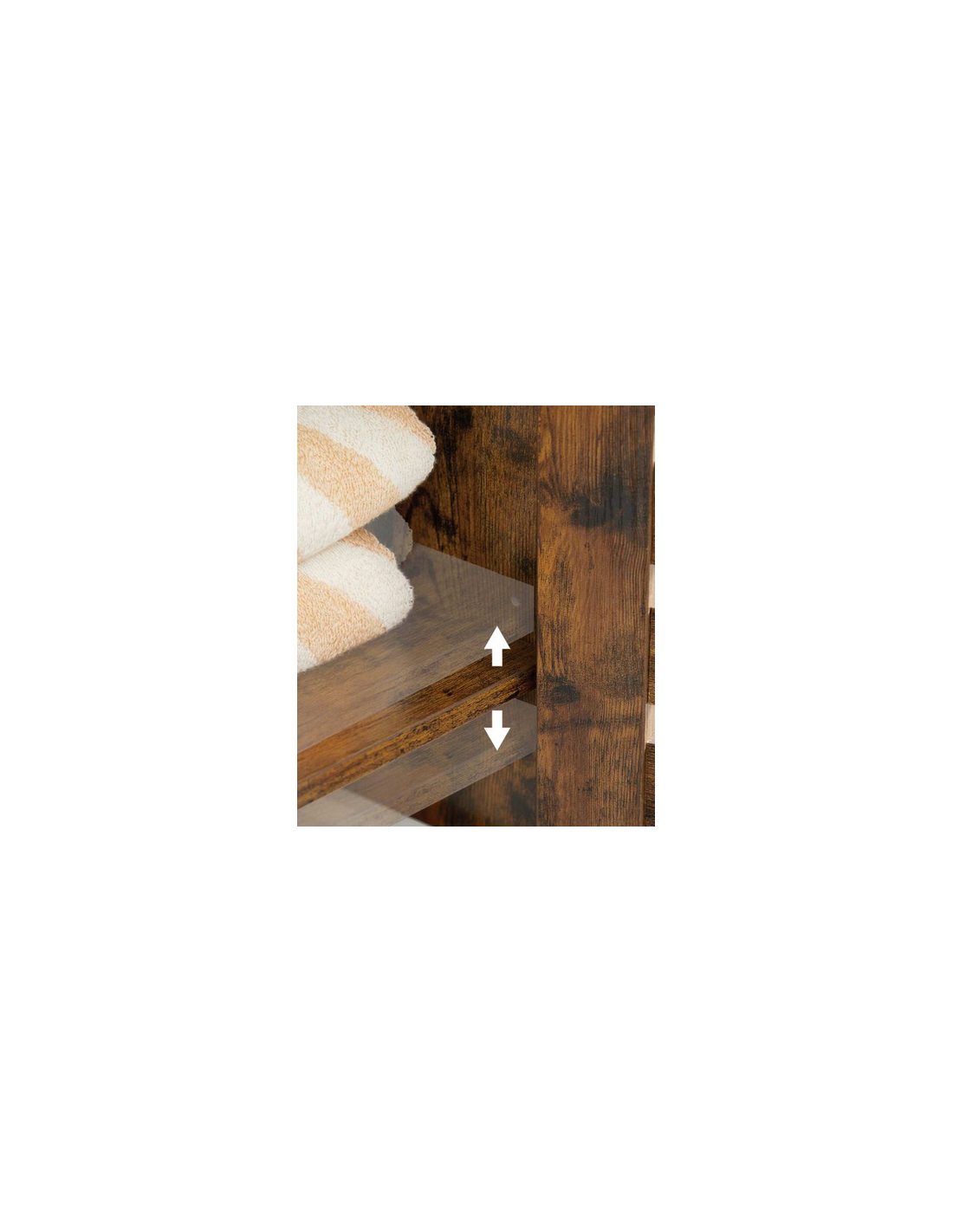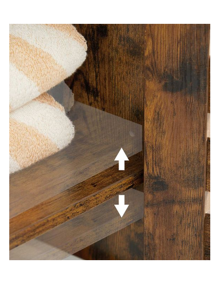 Skab til badeværelset, udført i et design af brun møbelplade. Skabet måler 167 cm i højden og 40 x 30 cm i bredde og dybde. Skabet indeholder justerbare hylder.