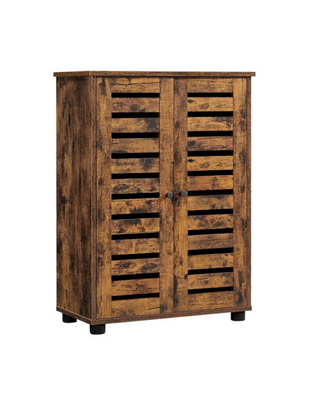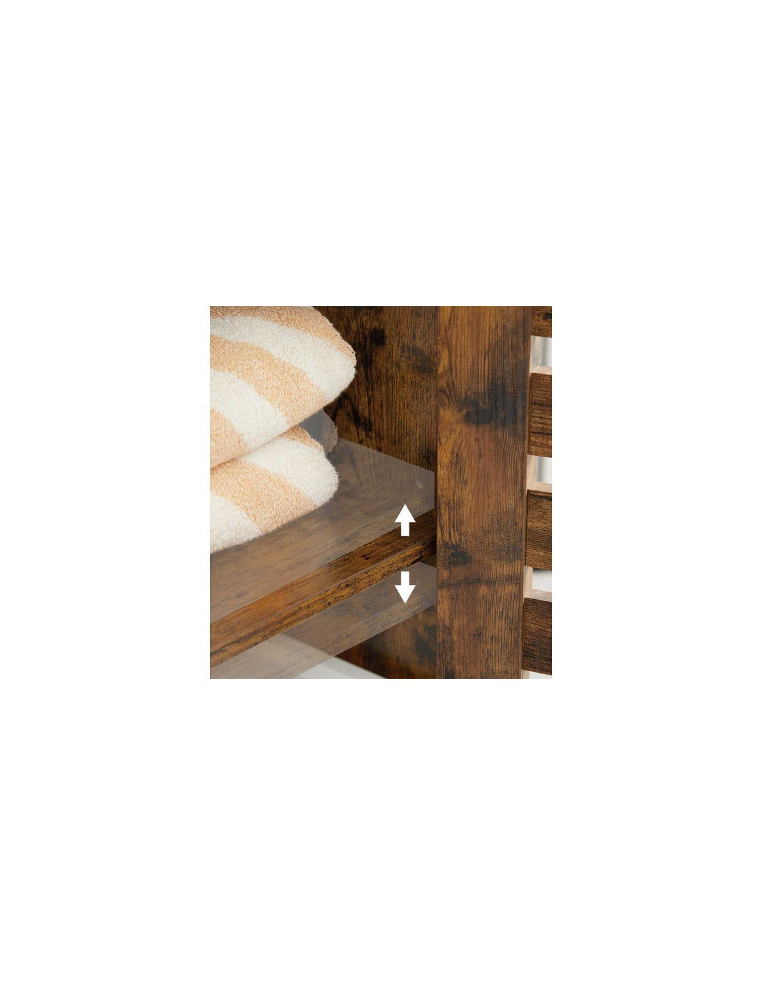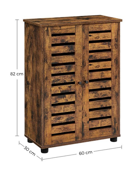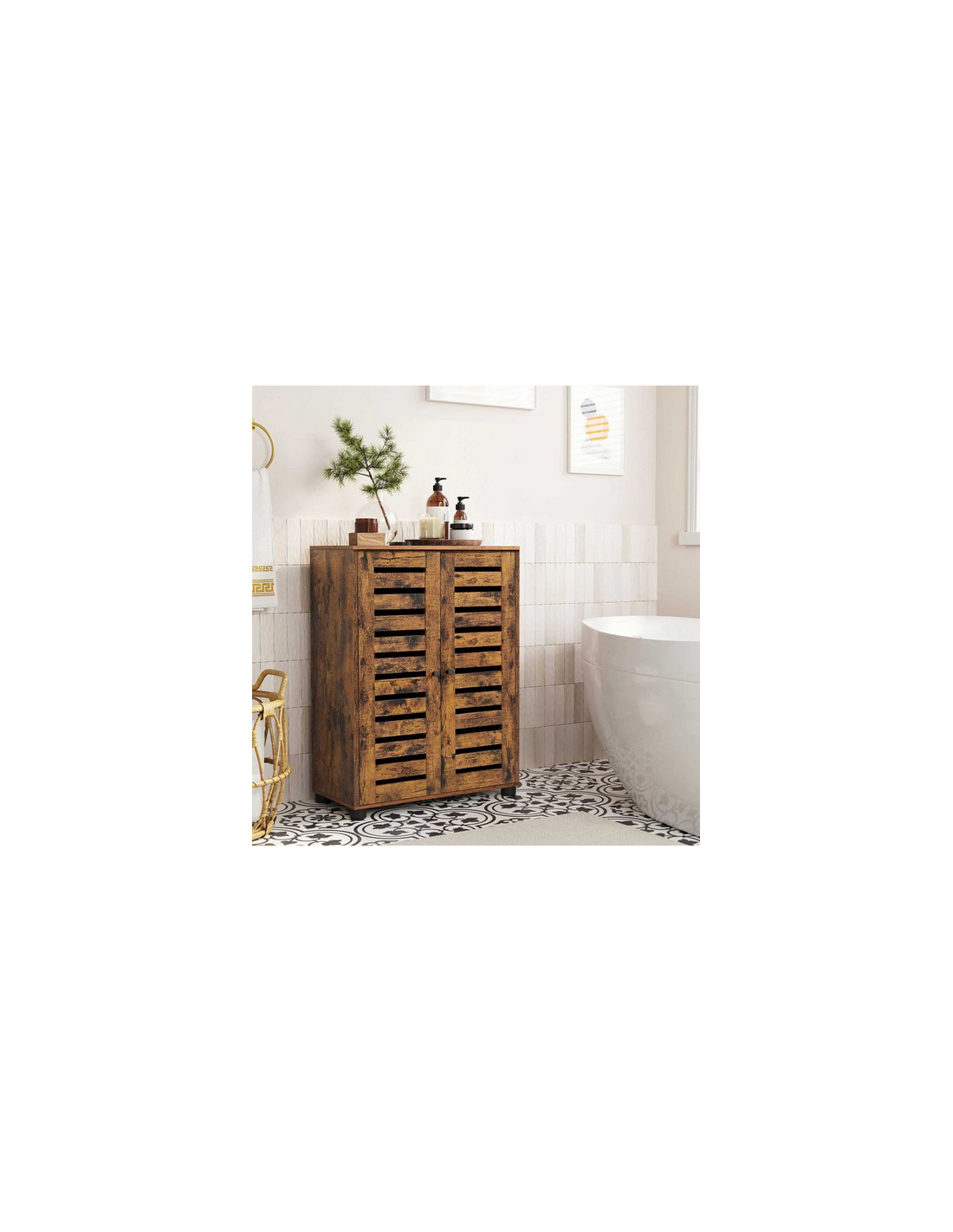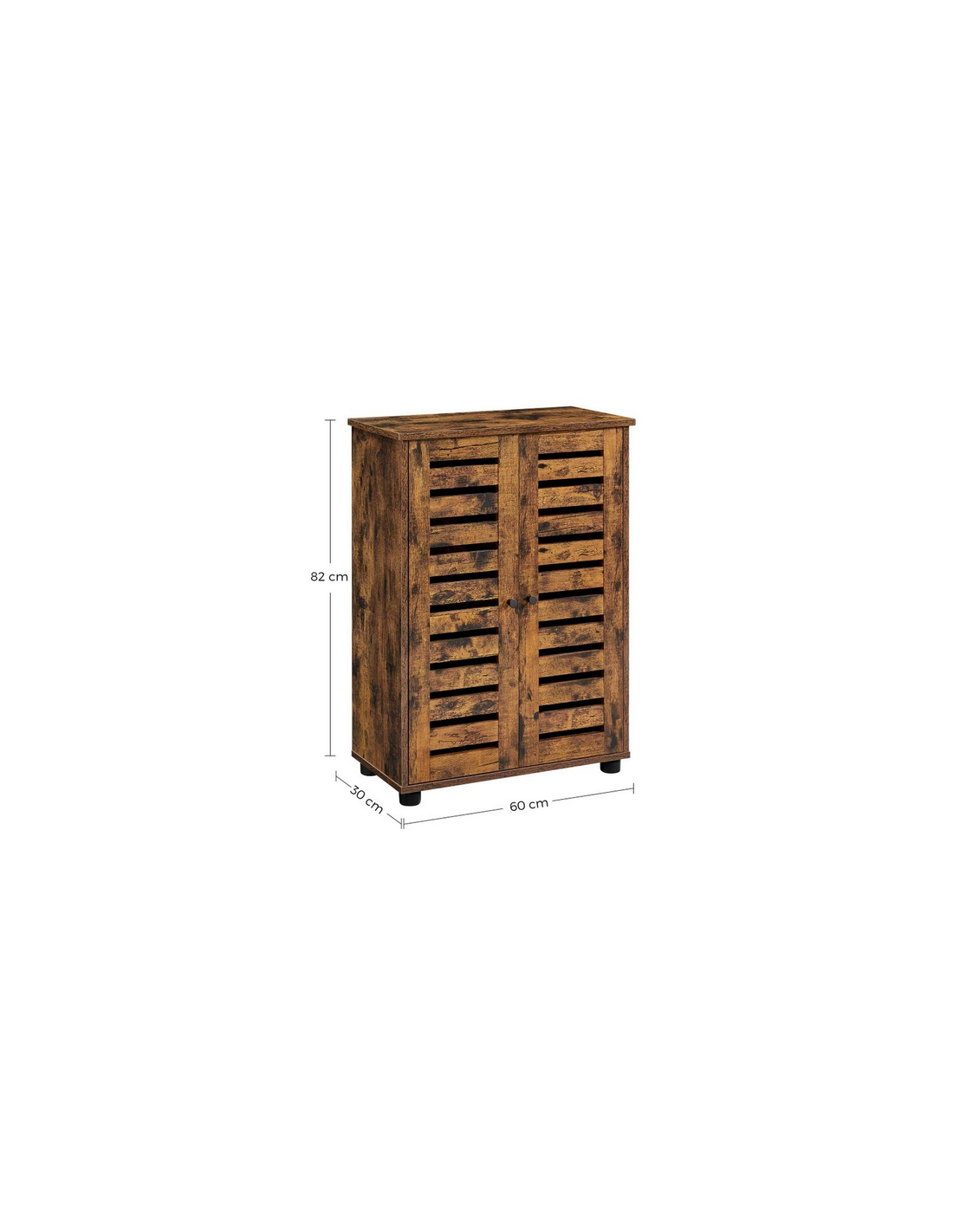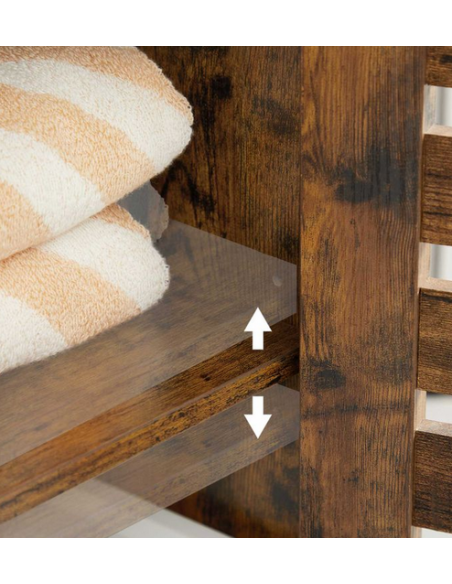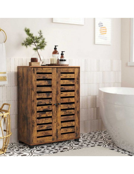 Skab til badeværelset, udført i et design af brun møbelplade. Skabet måler 82 cm i højden og 60 x 30 cm i bredde og dybde. Skabet indeholder 2 justerbare hylder.