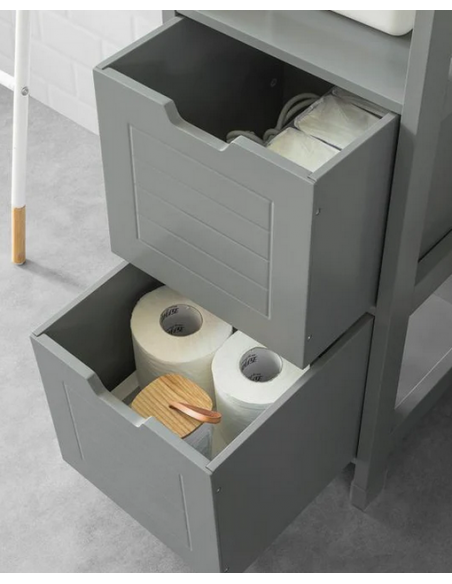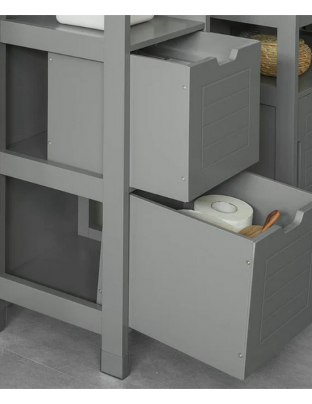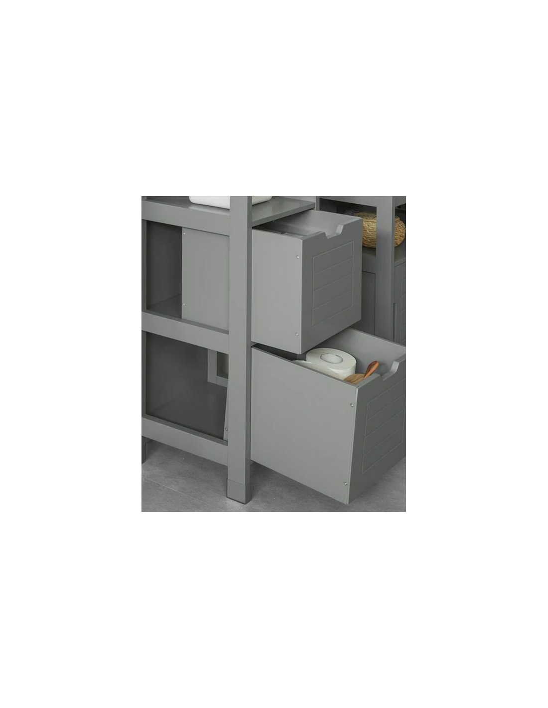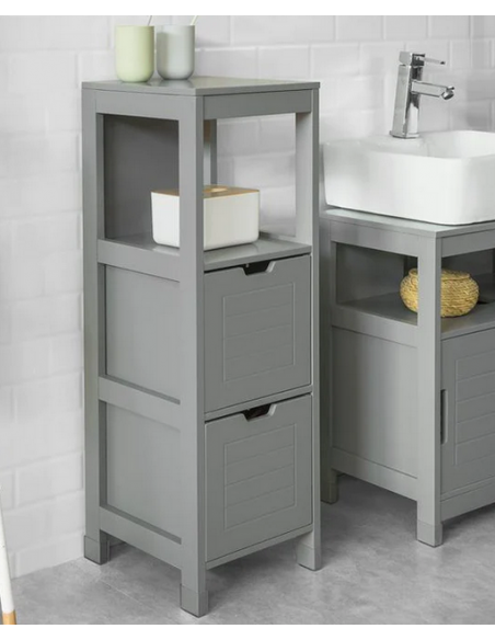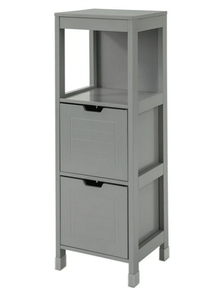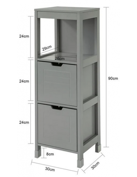 Skab til badeværelset, udført i et design af grå møbelplade. Skabet måler 90 cm i højden og 30 x 30 cm i bredde og dybde.