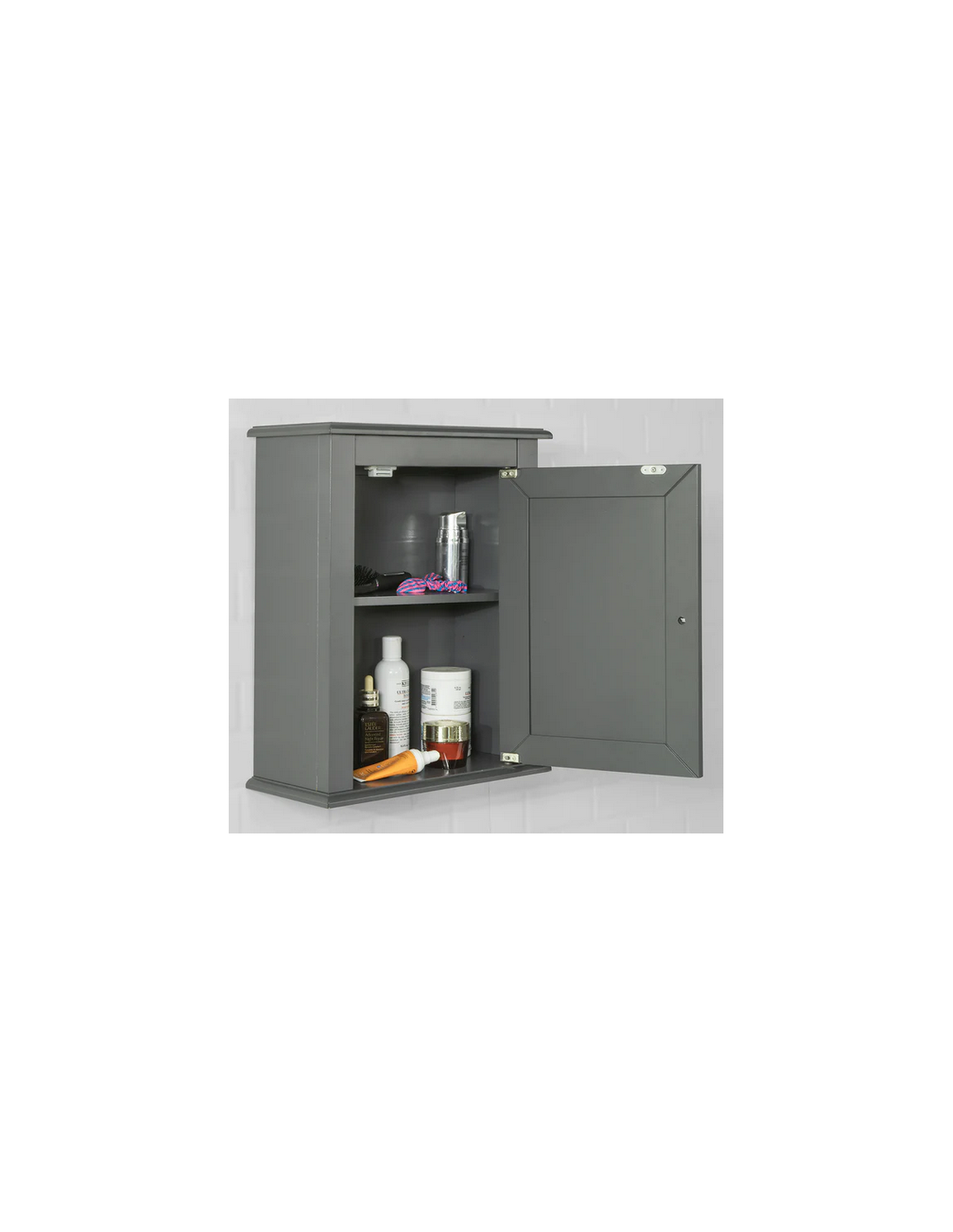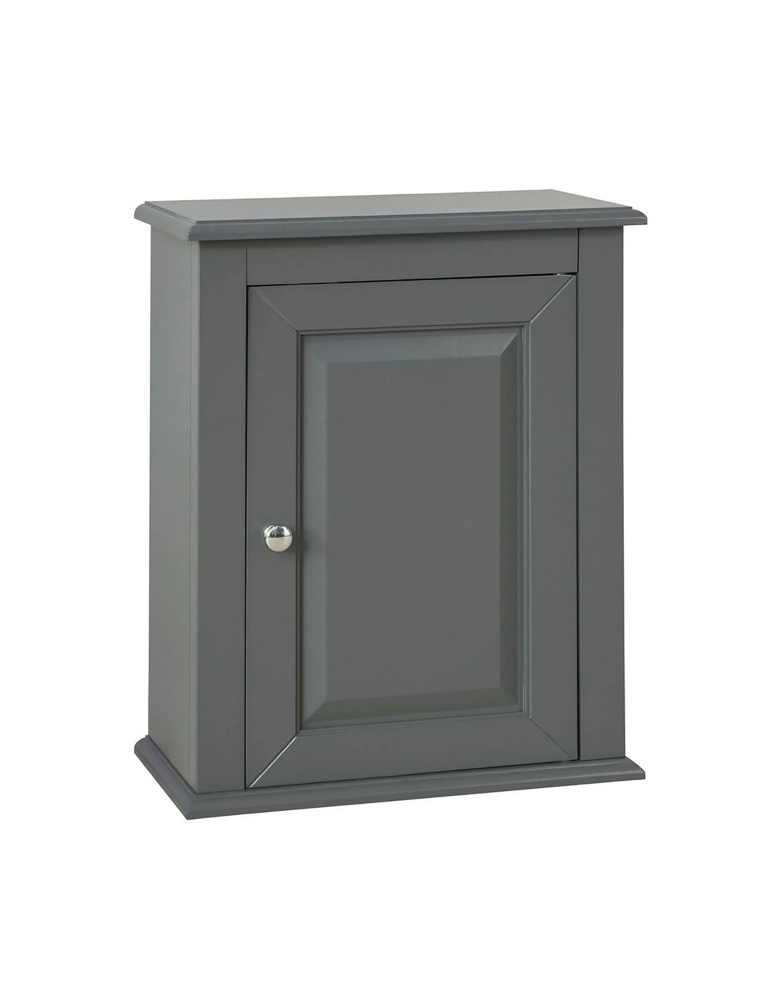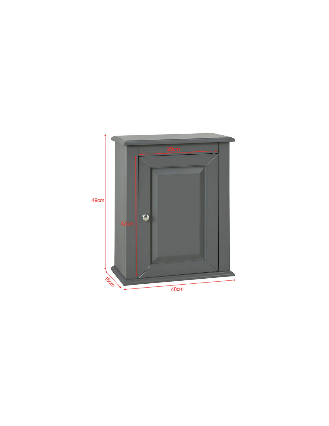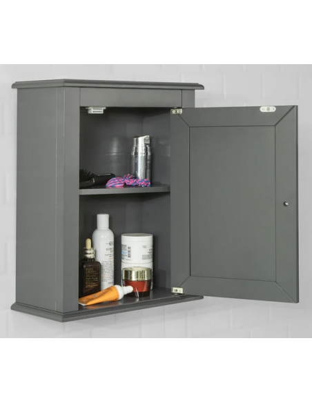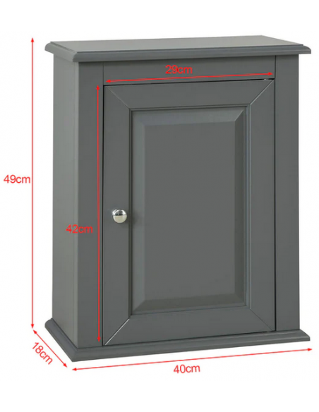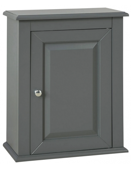 Skab til badeværelset, udført i et design af grå møbelplade. Skabet måler 49 cm i højden og 40 x 18 cm i bredde og dybde.
