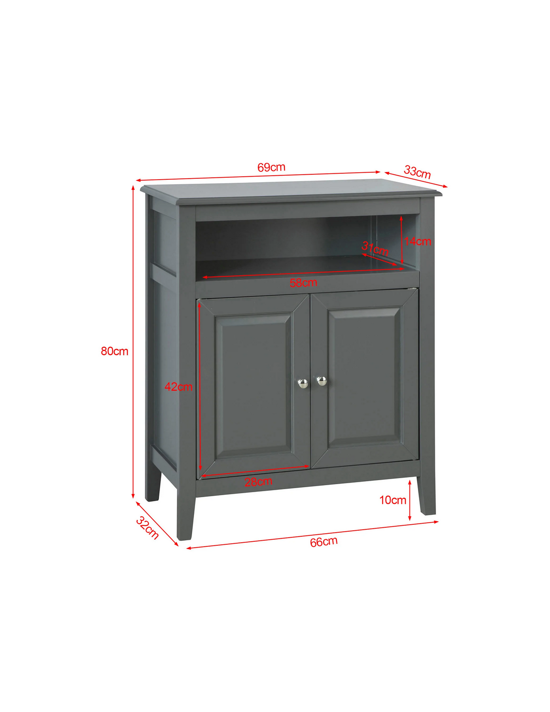 Skab til badeværelset, udført i et design af grå møbelplade. Skabet måler 80 cm i højden og 69 x 33 cm i bredde og dybde.