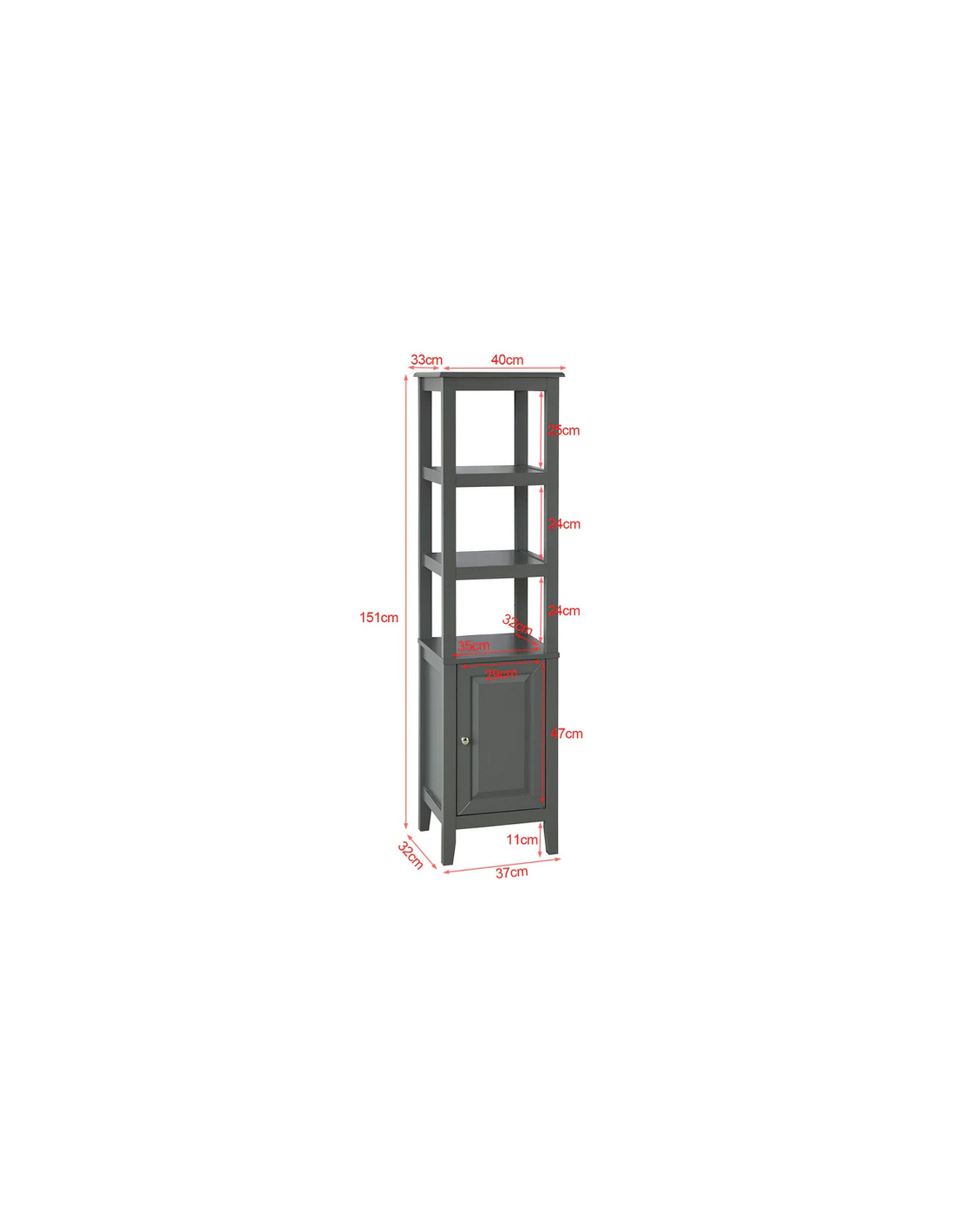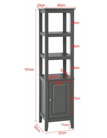 Skab til badeværelset i mdf og møbelplade H151 x B40 cm - Grå