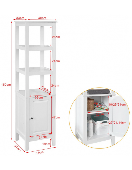 Skab til badeværelset i mdf og møbelplade H151 x B40 cm - Hvid